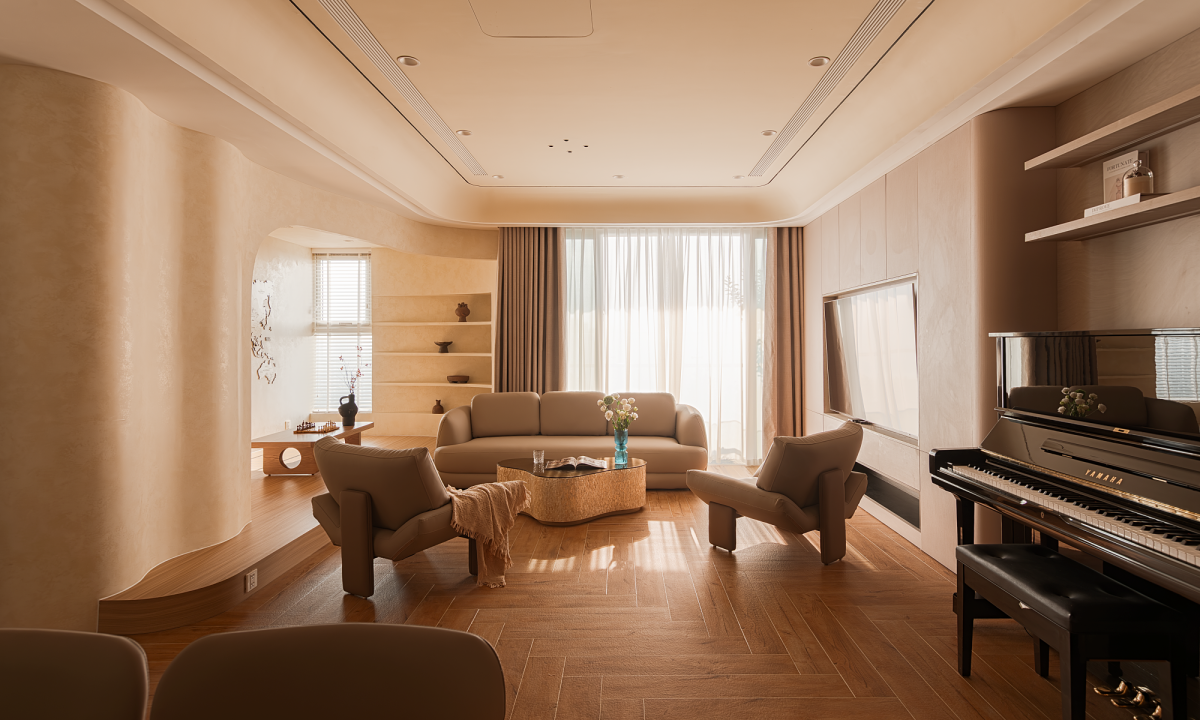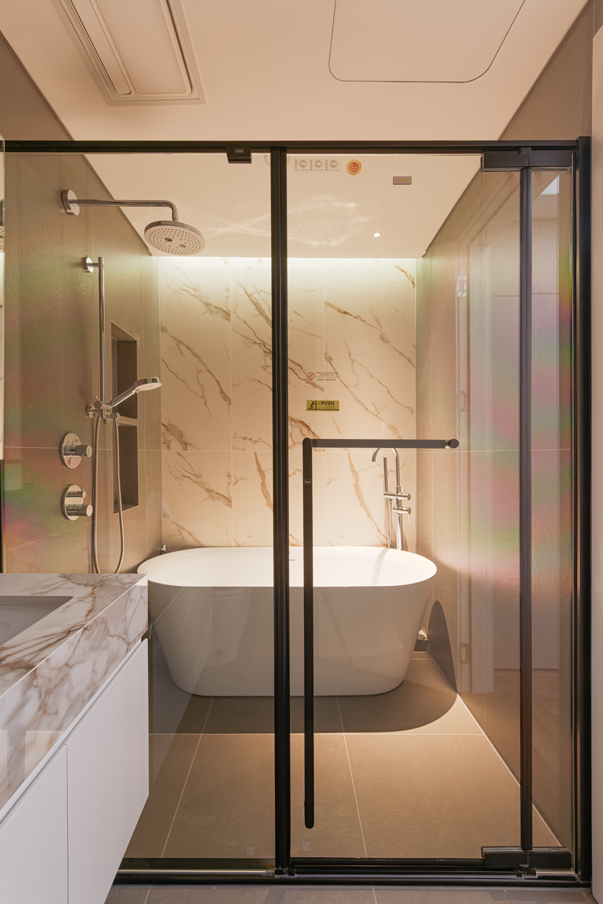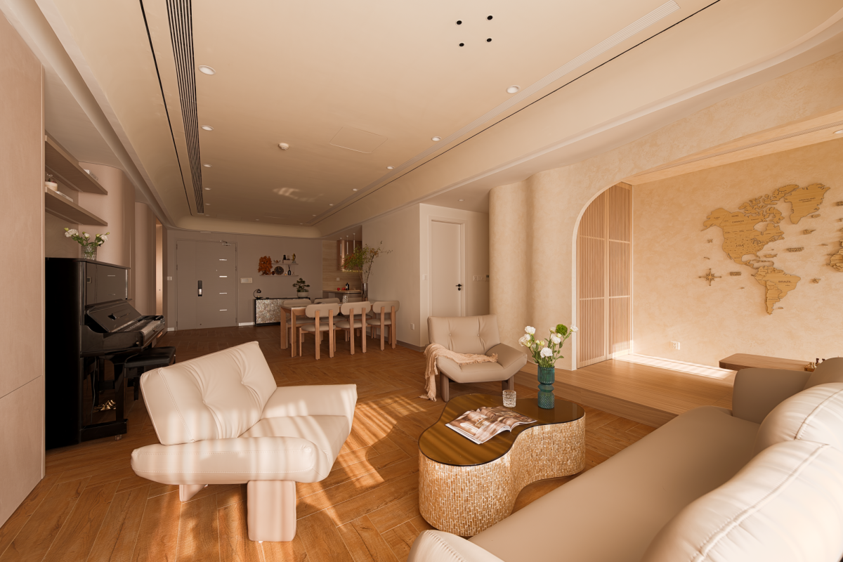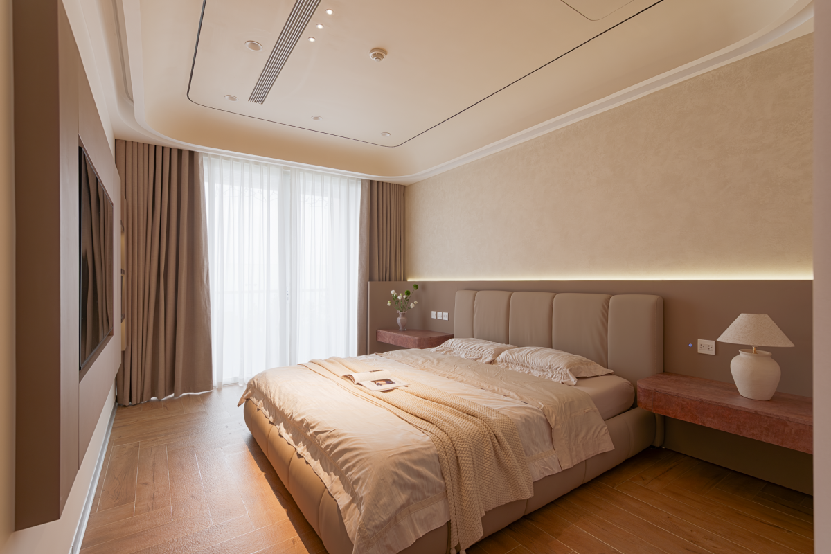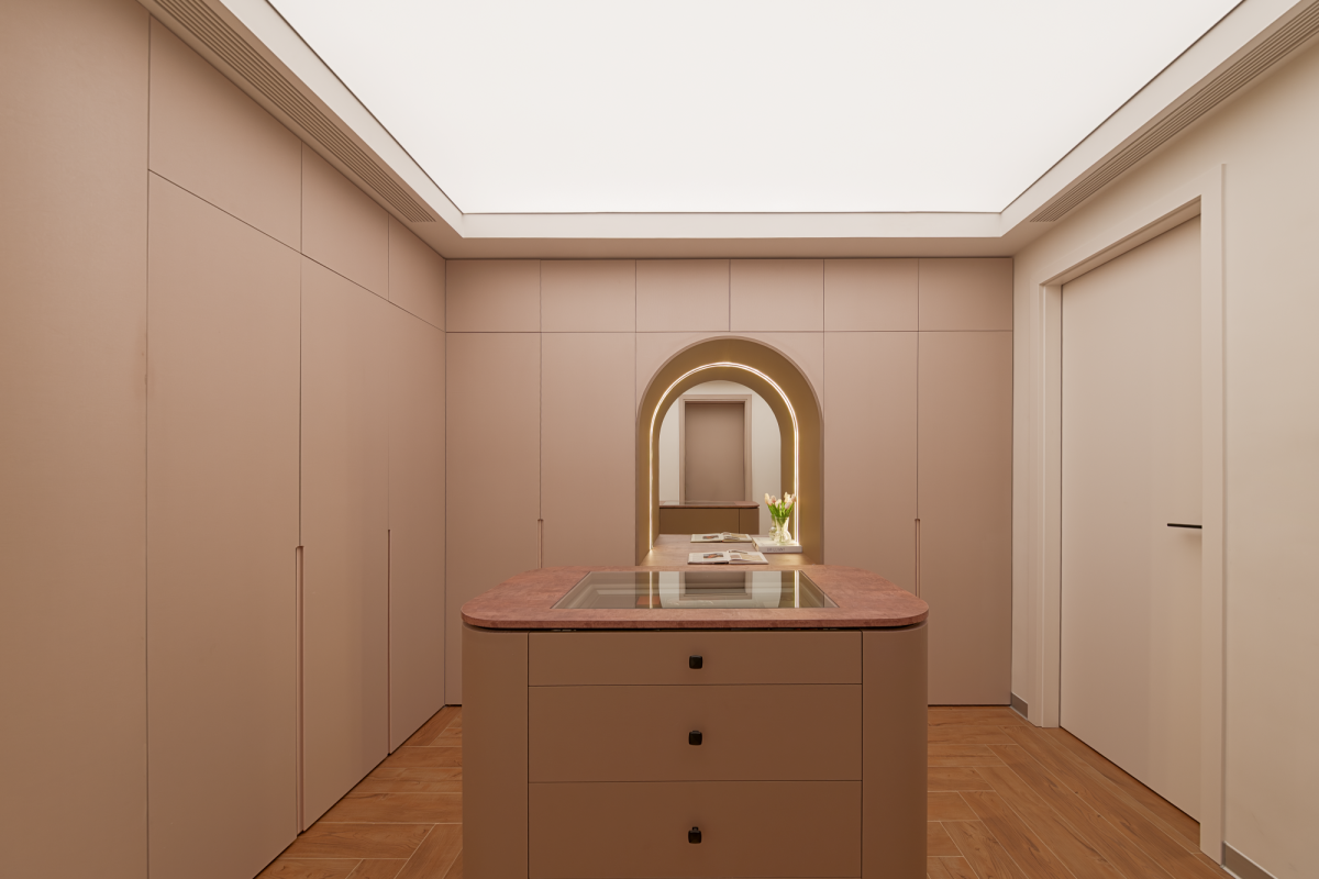 Căn hộ được cải tạo bằng việc khai thác vật liệu mới lạ làm ngôn ngữ thiết kế chủ đạo, tạo trải nghiệm sống liền mạch và có chiều sâu.