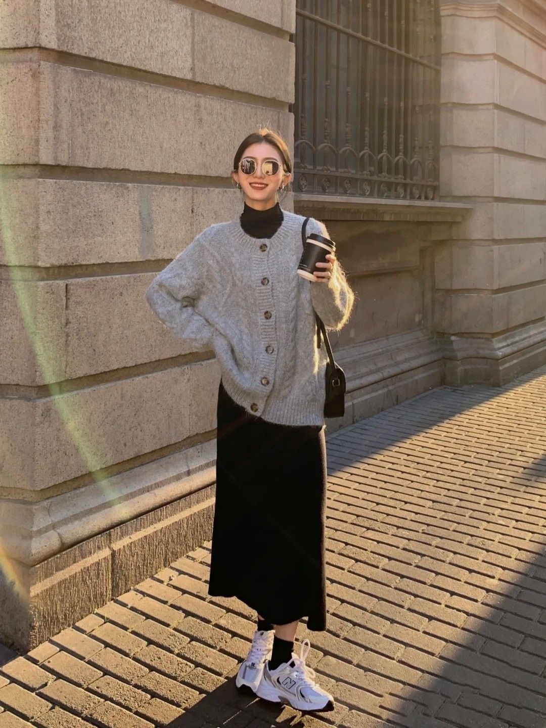Áo khoác len và chân váy mini là một trong những kiểu kết hợp phổ biến, được các fashionista ưa chuộng.