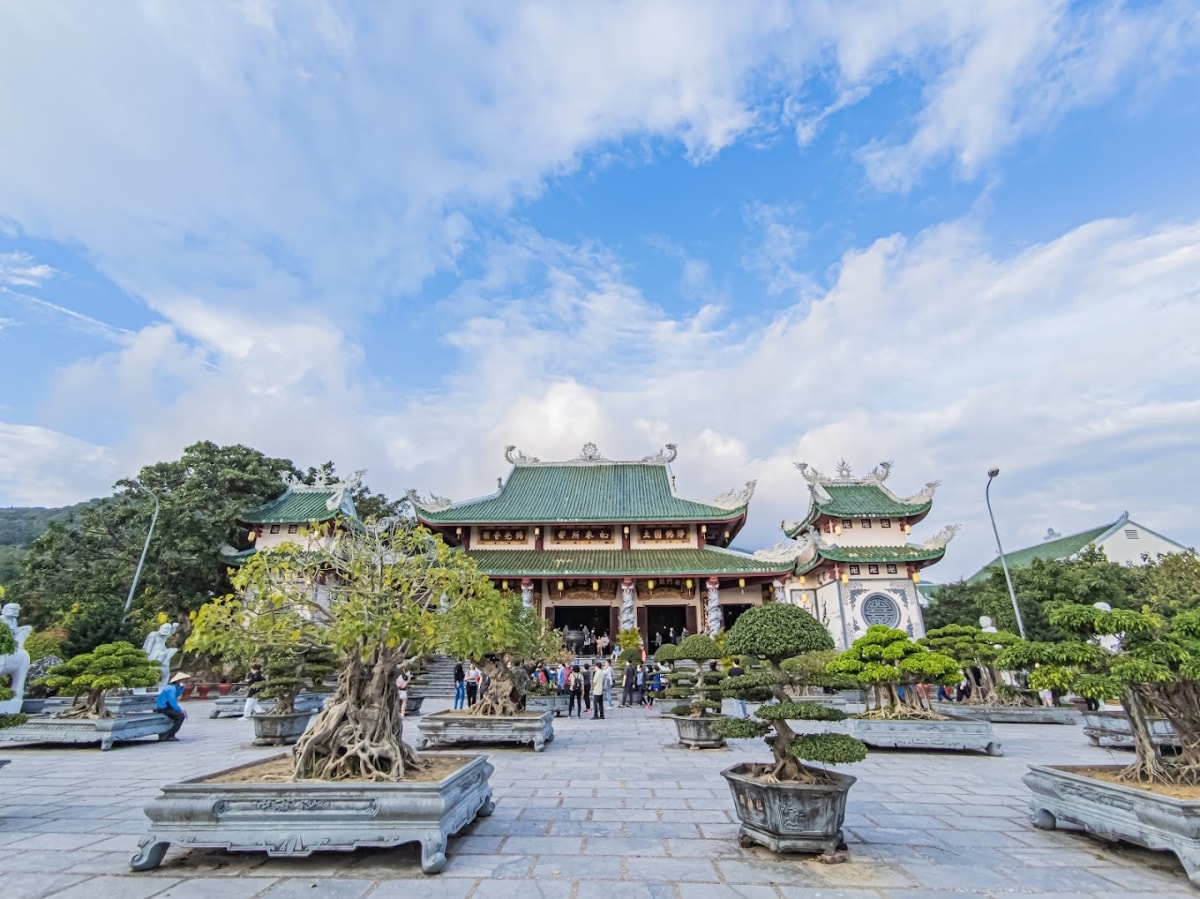 Không chỉ là điểm tham quan với tầm nhìn bao quát biển Mỹ Khê và toàn cảnh Đà Nẵng từ trên cao, chùa còn được nhiều bạn trẻ tìm đến dịp đầu năm để cầu duyên. Theo quan niệm dân gian, việc thành tâm khấn nguyện trước tượng Quan Âm có thể giúp hóa giải trắc trở trong chuyện tình cảm, mở ra cơ hội mới. Ảnh: Phan Thanh Kiệt