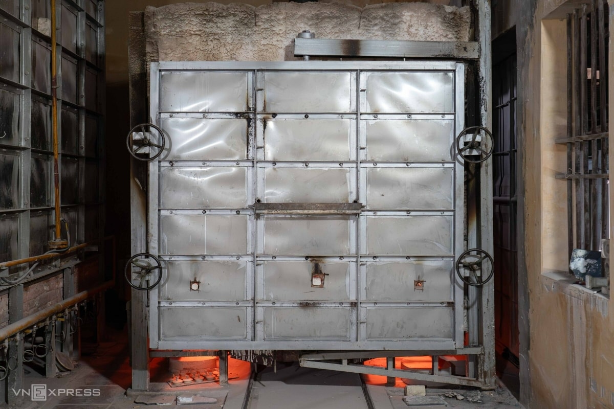 Công đoạn sơ nung được thực hiện bằng bếp ga chuyên dụng, duy trì nhiệt độ khoảng 600 độ C trong 5–6 giờ. Trung bình mỗi tháng, xưởng tiêu thụ khoảng 9 tấn gas, chi phí vào khoảng 200 triệu đồng.