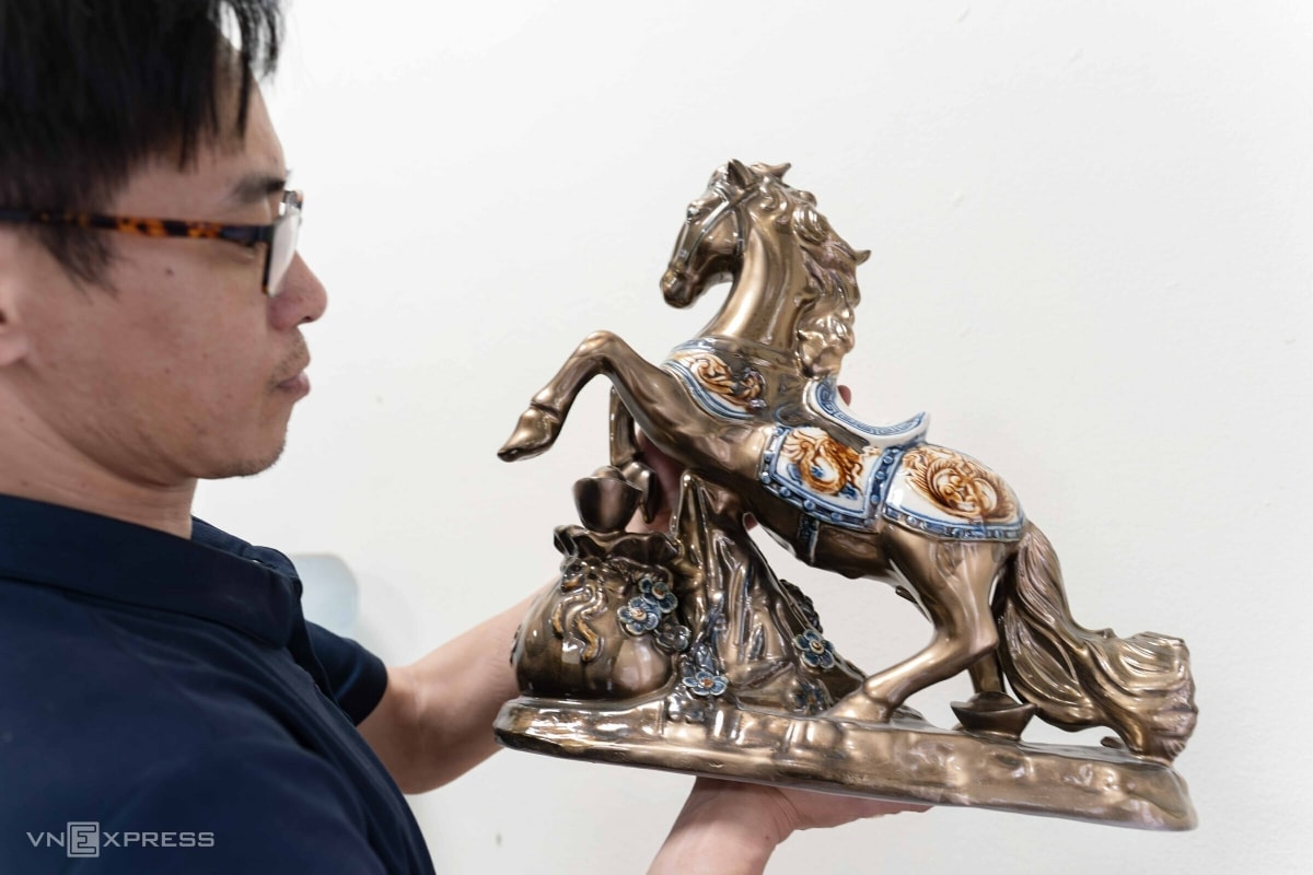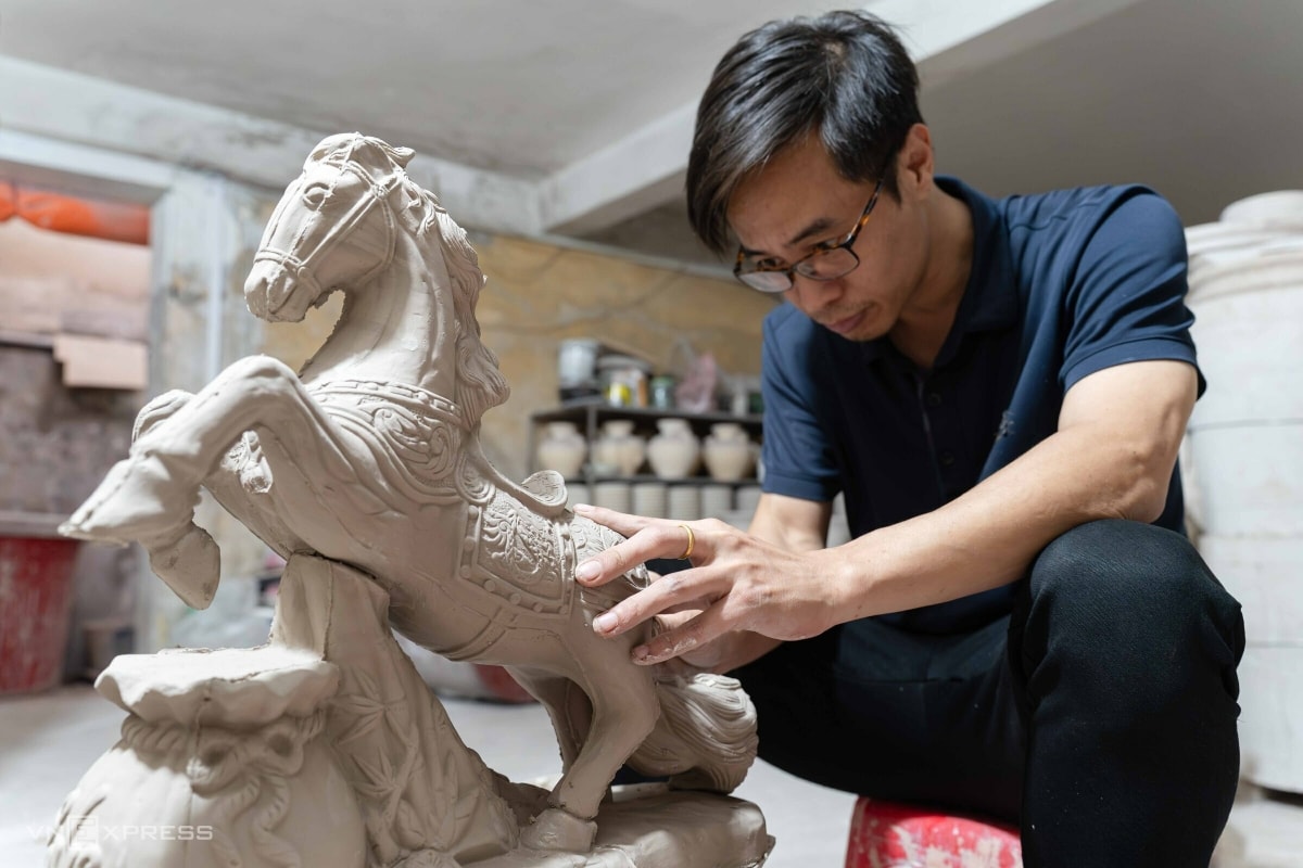Trước Tết Nguyên Đán 3 tháng, xưởng gốm nhà ông Phạm Đức Dũng ở thôn 2, xã Bát Tràng nhận hàng chục đơn đặt hàng linh vật ngựa, mỗi sản phẩm mất 100 giờ để hoàn thiện.