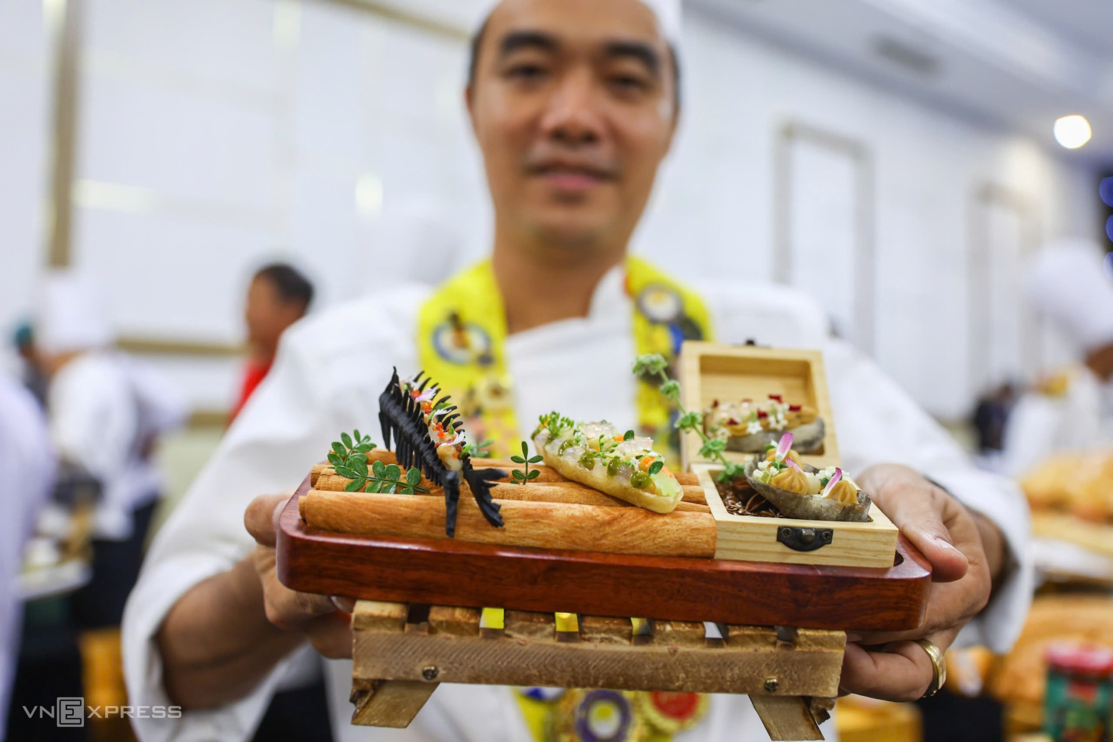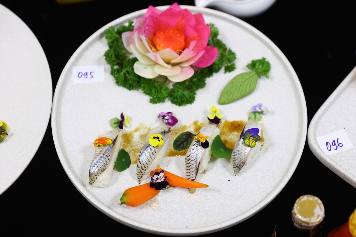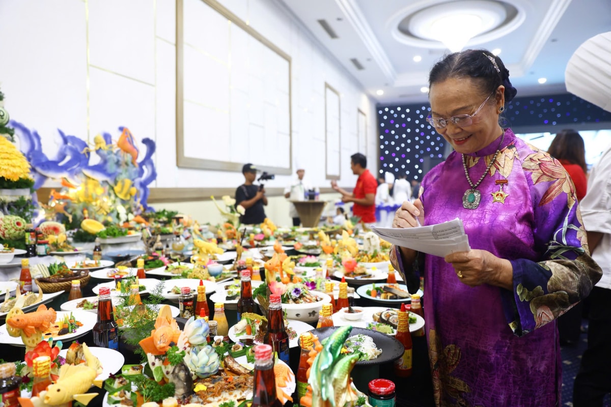Nhiều món ăn Việt Nam và quốc tế được các siêu đầu bếp sáng tạo, trưng bày tại sự kiện xác lập kỷ lục Việt Nam, ngày 23/10.