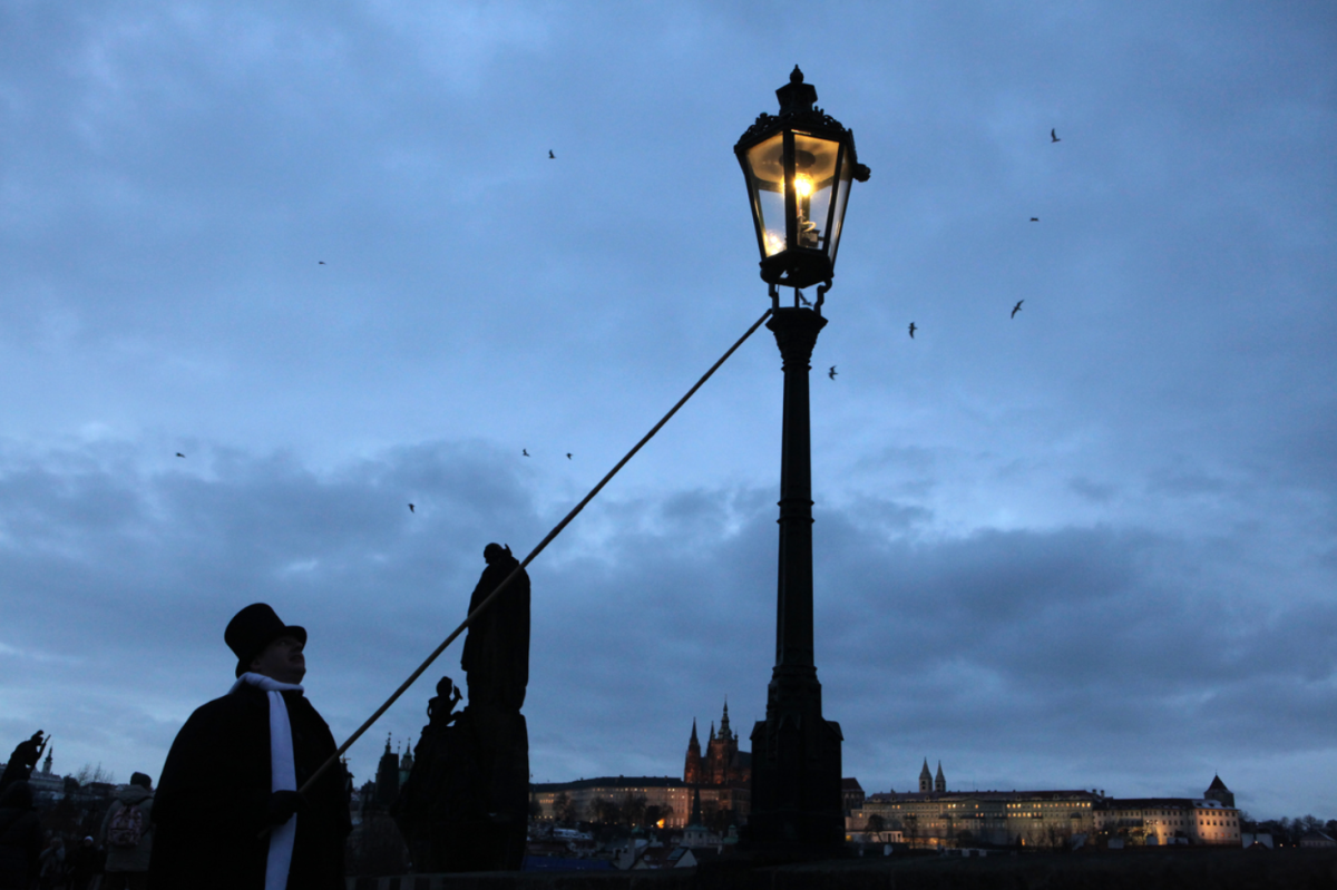 Trước kỷ nguyên điện sáng, nhân viên thắp đèn đi châm lửa từng cột đèn gas lúc chạng vạng, dập tắt khi bình minh và kiêm nhiệm bảo trì. Đèn điện ra đời cuối thế kỷ 19 đưa nghề này vào dĩ vãng, hiện chỉ rải rác vài nơi ở châu Âu giữ lại nhằm bảo tồn văn hóa. Ảnh: Rivka Cohen