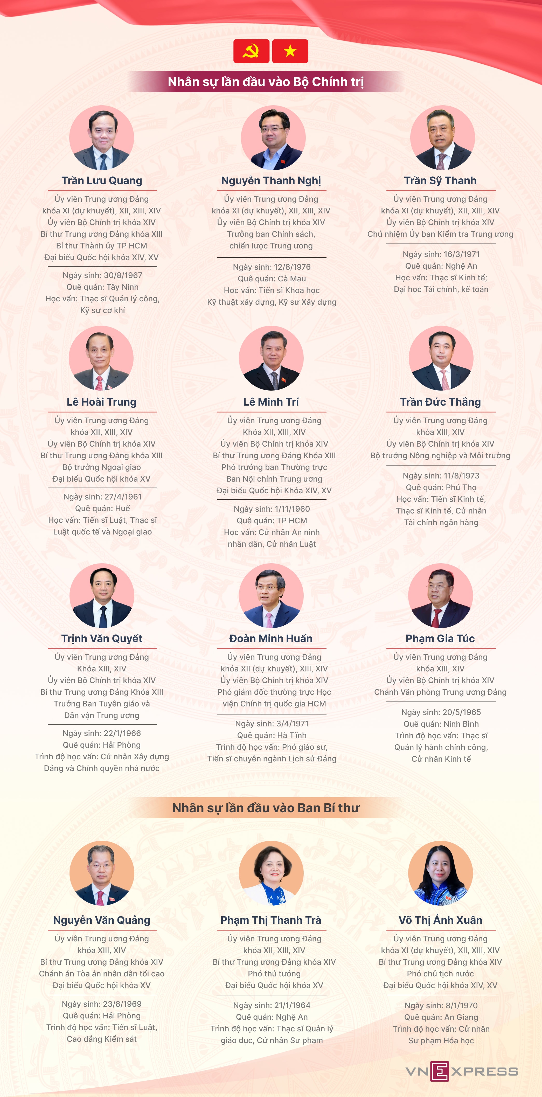 Trung ương khóa XIV vừa bầu Bộ Chính trị gồm 19 Ủy viên, trong đó có 9 người lần đầu tham gia; Ban Bí thư gồm 13 Ủy viên, với 3 người mới được bầu.