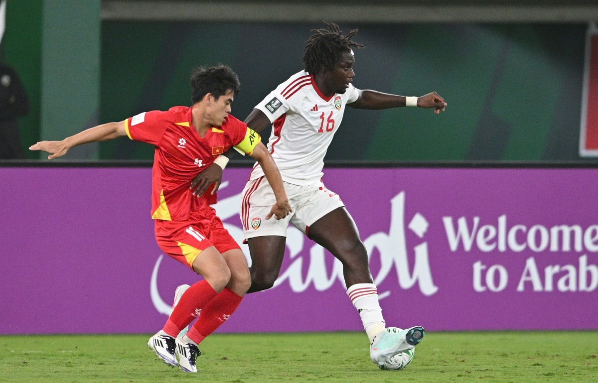Nhưng thế dẫn bàn của Việt Nam chỉ kéo dài trong ba phút. Tiền đạo gốc Pháp nhập tịch Junior Ndiaye gỡ hòa cho UAE bằng cú đánh đầu cận thành tung lưới Trung Kiên.