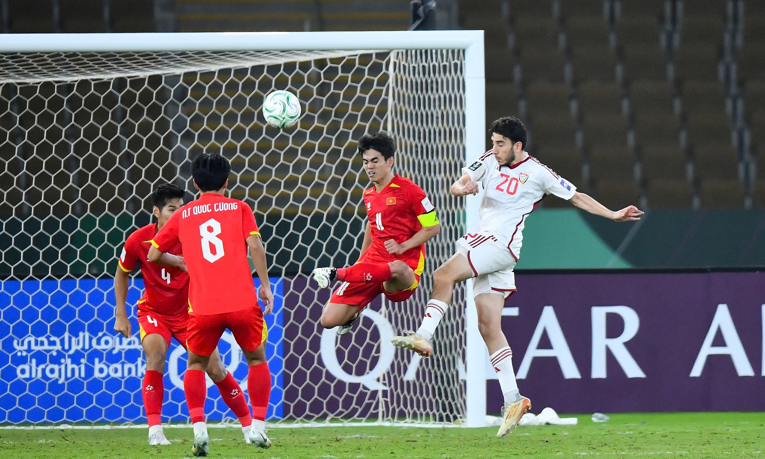 UAE tiếp tục gây sức ép, tạo nhiều tình huống nguy hiểm, trong đó một lần sút bóng đập xà ngang Việt Nam.