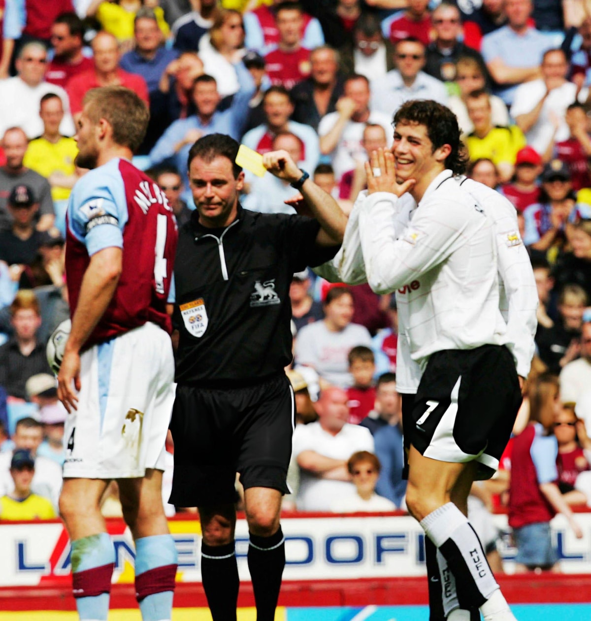 15/5/2004: Aston Villa - Man Utd (Ngoại hạng Anh). Ronaldo nhận thẻ đỏ đầu tiên trong sự nghiệp khi thi đấu cho Man Utd.