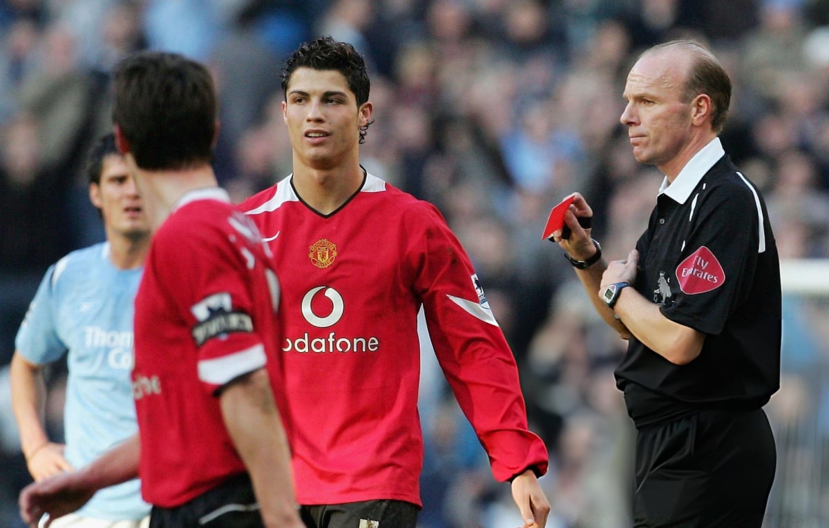 14/1/2006: Man City - Man Utd (Ngoại hạng Anh). Gần hai năm sau, CR7 nhận thẻ đỏ trực tiếp trong trận derby thành Manchester.