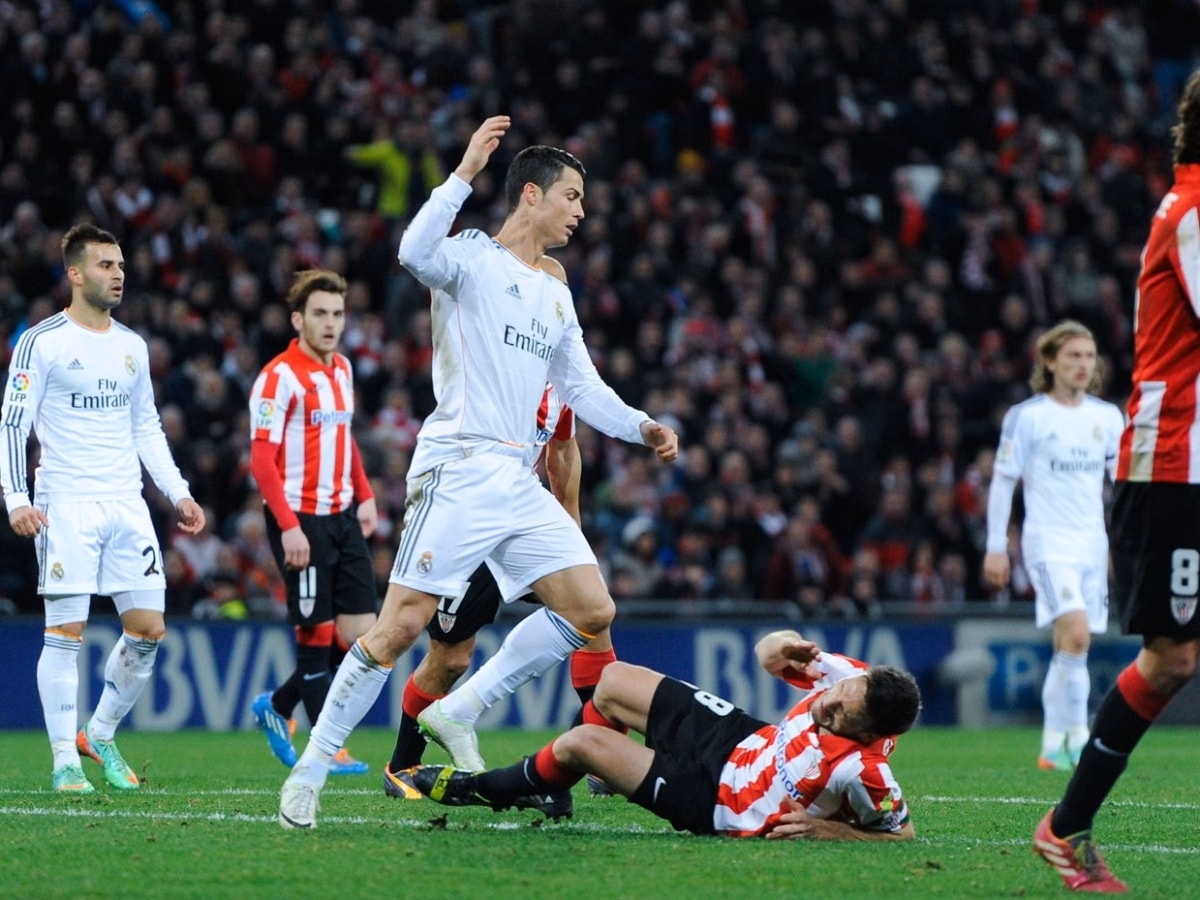 2/2/2014: Athletic Bilbao - Real (La Liga). Ronaldo gạt tay vào má hậu vệ Carlos Gurpegi, phản ứng với trọng tài và tiếp tục xô xát với hai cầu thủ Athletic Bilbao, sau tình huống đồng đội bị cản người không bóng. Sau trận hòa 1-1 này, cầu thủ Bồ Đào Nha bị treo giò 3 trận.