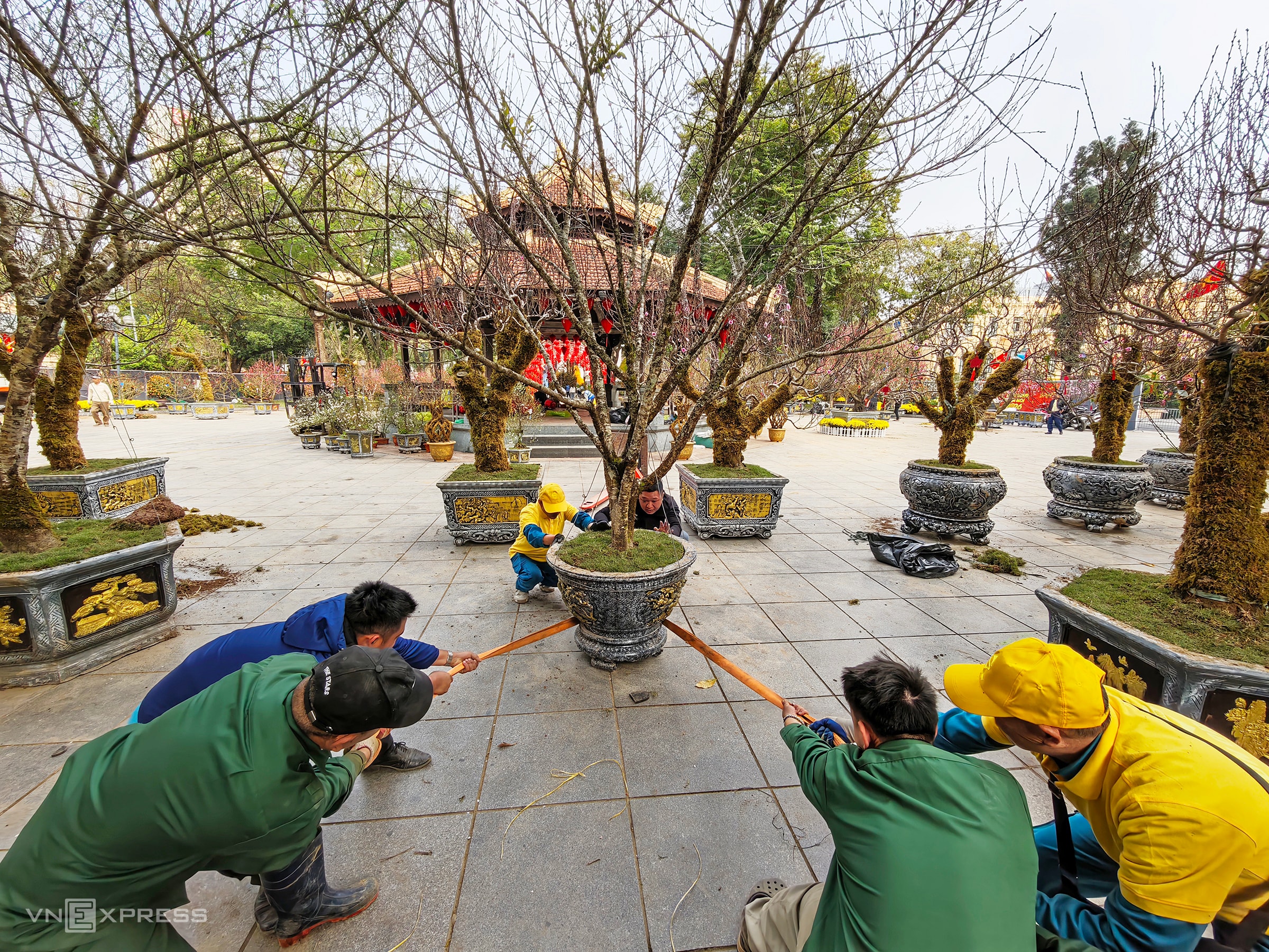 10 nghệ nhân trồng đào, quất từ Nhật Tân và Nam Định trực tiếp thẩm định, chọn từng gốc đào cổ, quất cảnh và chăm sóc kỹ lưỡng, đảm bảo cây đạt độ rực rỡ khi trưng bày tại đường hoa.