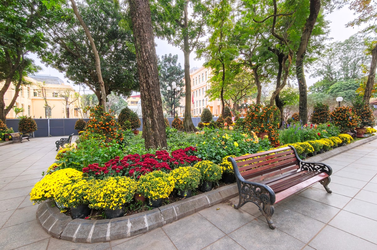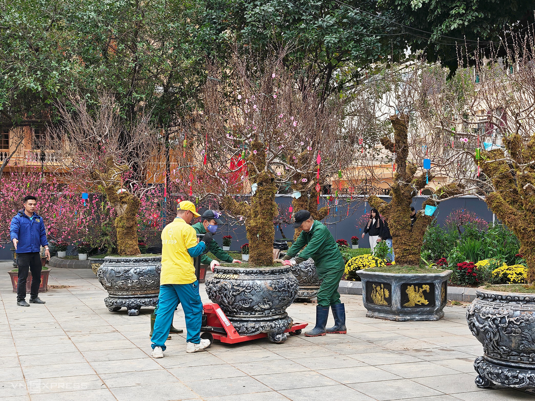 Ngày 13/2, không gian hoa xuân lớn nhất Hà Nội (rộng 14.000 m2) tại vườn hoa Lý Thái Tổ đã hoàn thành.