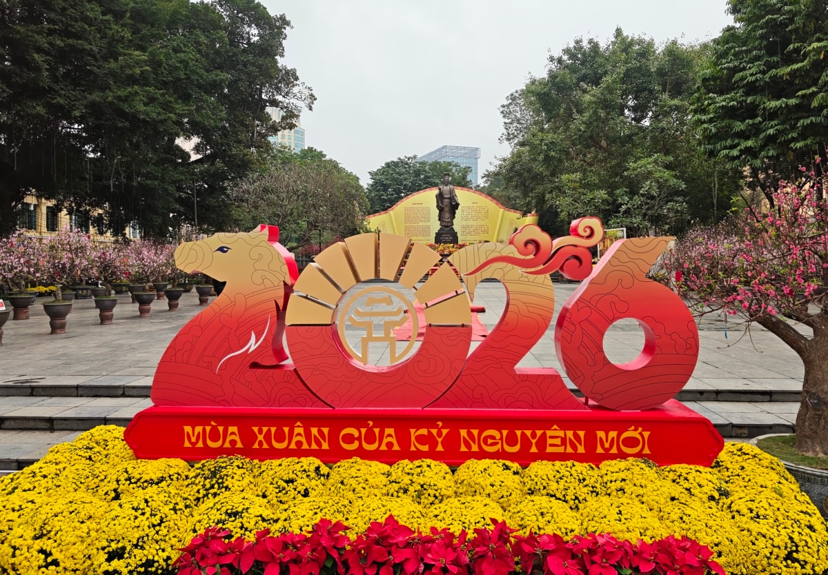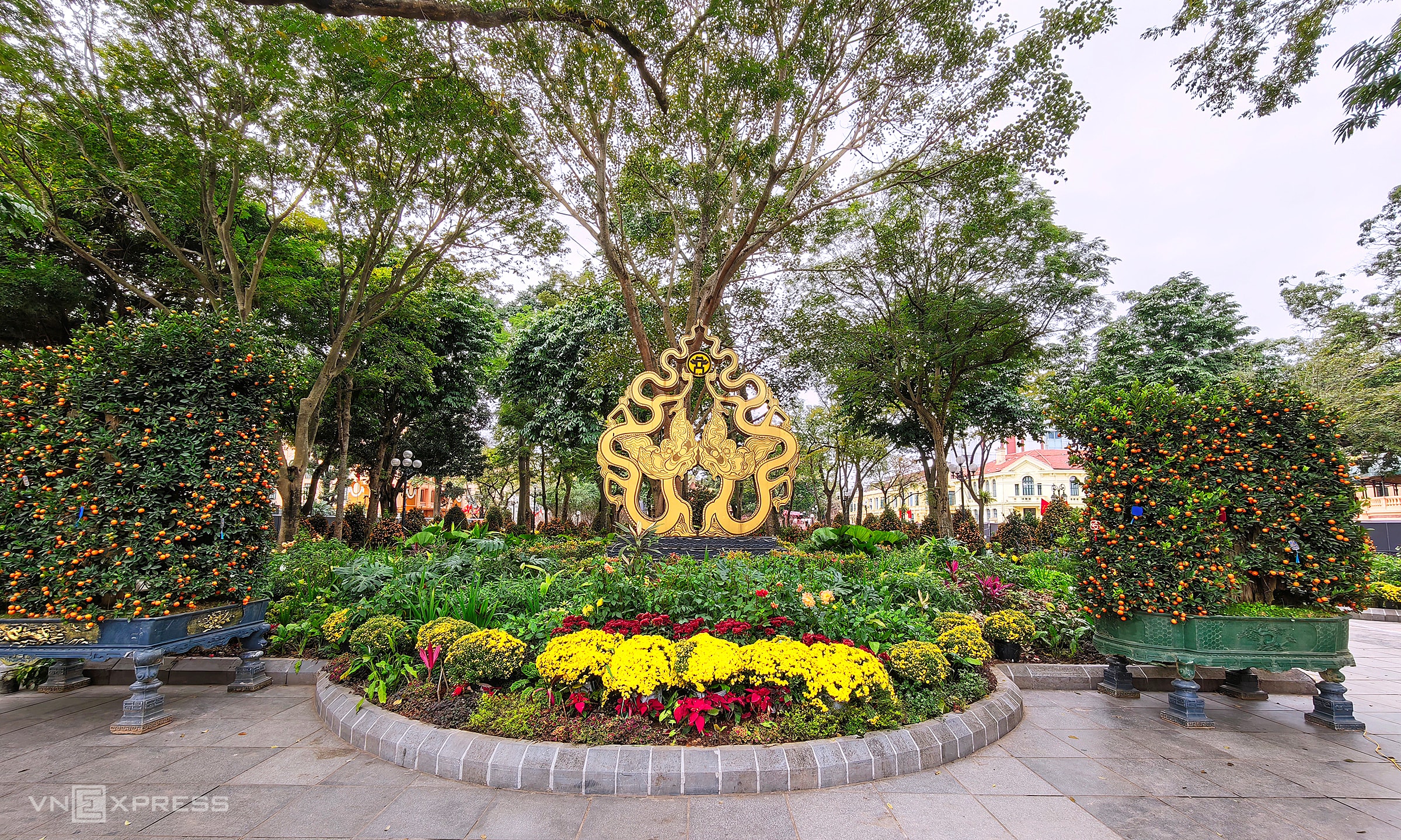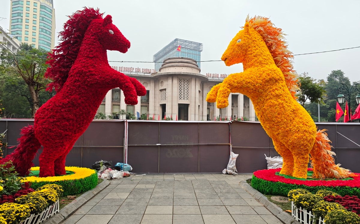 Cụm đại cảnh "Song Mã kết hoa" đặt đối diện Ngân hàng Nhà nước với hình hai con ngựa kết từ hơn 6.000 bông hoa, biểu tượng năm Bính Ngọ.