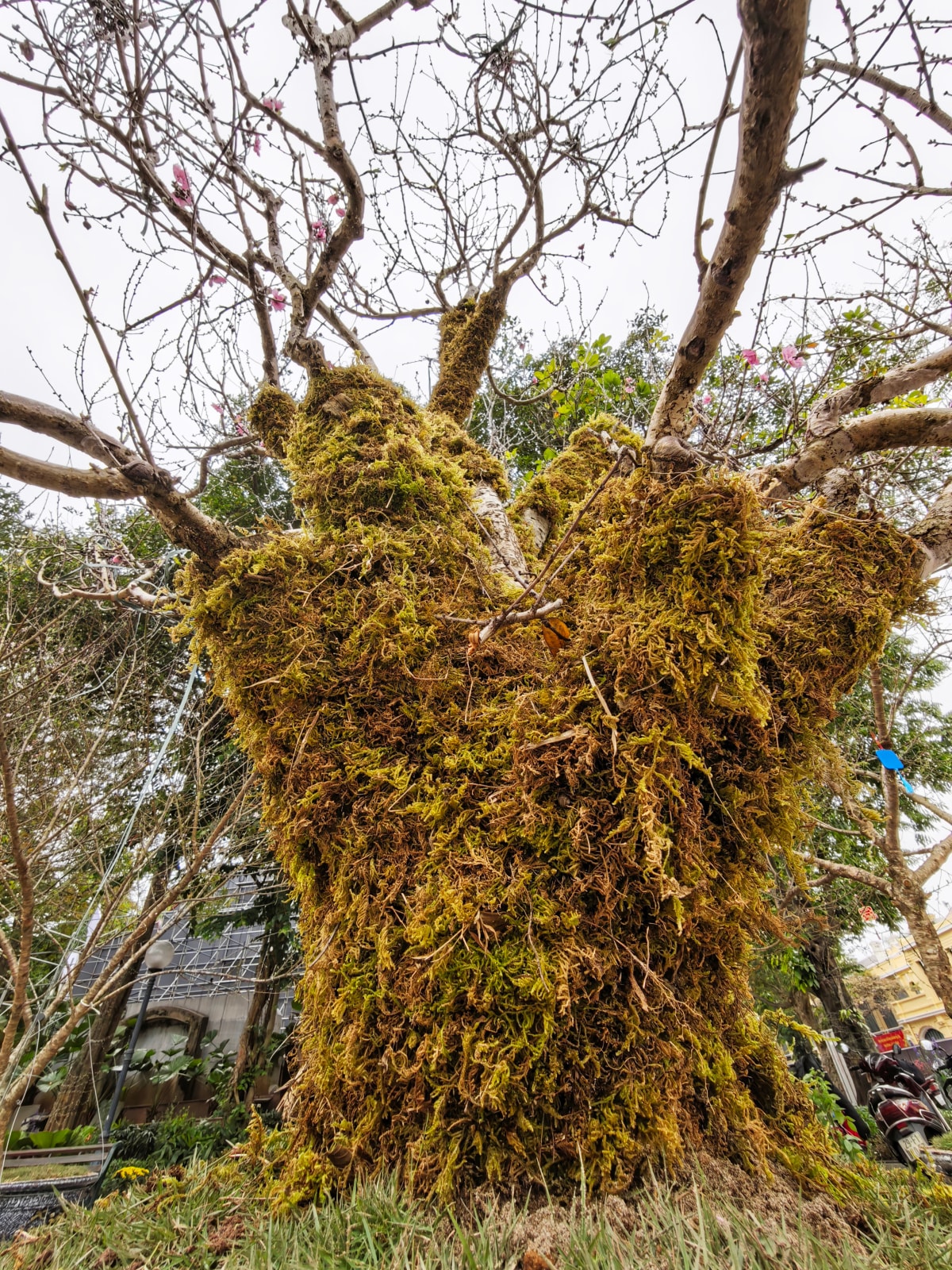Gốc đào phai ghép 15 năm tuổi, hoa to, cánh kép hồng nhạt.