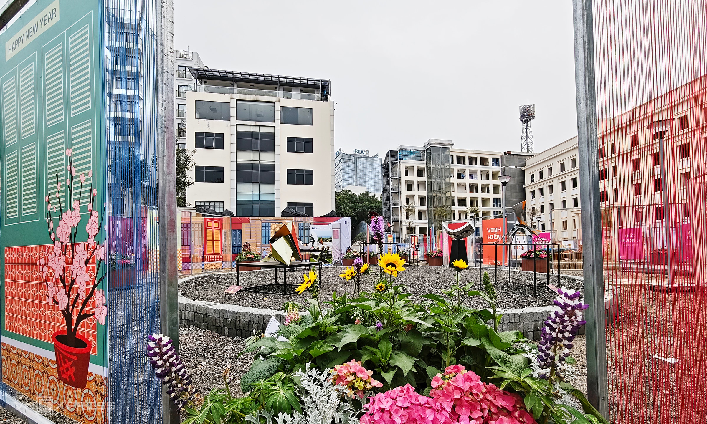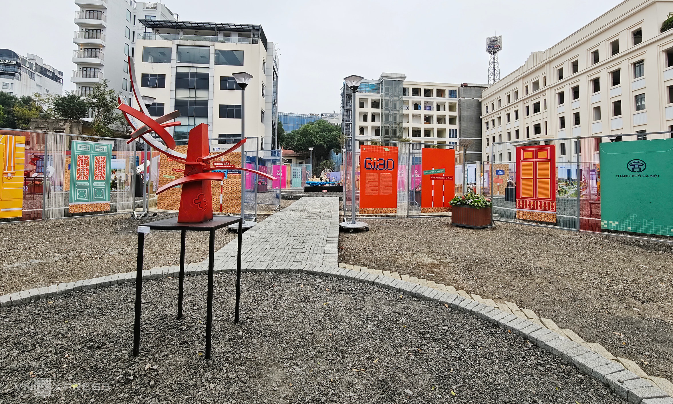 Cách đó 200 m, khu đất vừa giải tỏa làm công viên phía Đông Hồ Gươm đã được dọn dẹp để tổ chức không gian trưng bày nghệ thuật. Không gian mở nằm trên mặt đường Đinh Tiên Hoàng, cạnh trụ sở Điện lực Hà Nội là điểm đến tham quan của người dân trong dịp Tết.