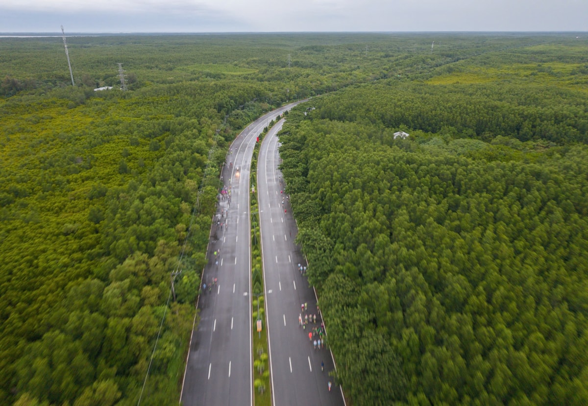 4.000 runner thi đấu trong cơn mưa sáng sớm, chinh phục những cung đường xuyên rừng ngập mặn, qua trung tâm xã Cần Giờ, tại HDBank Green Marathon, sáng 28/9.