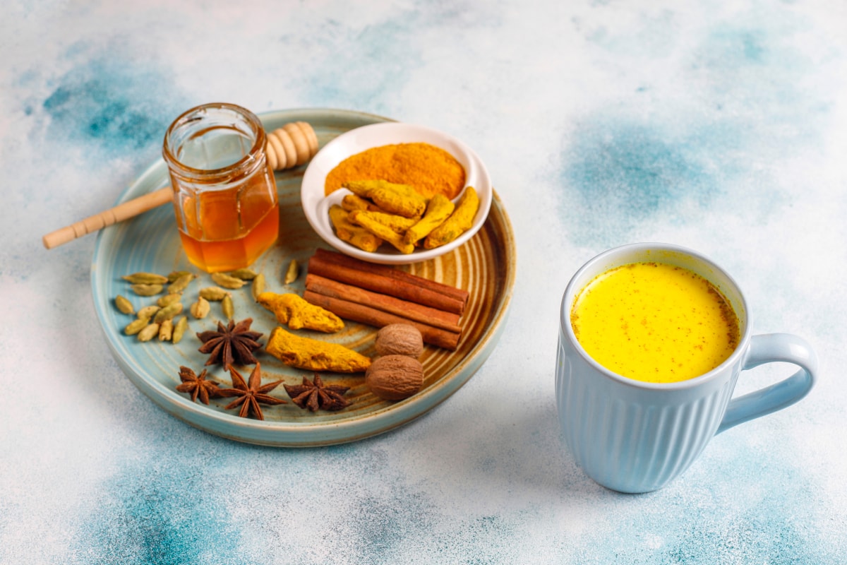 Sữa tách béo trộn nghệ vừa giúp no lâu vừa hỗ trợ dạ dày khỏe, trong khi đó trà nghệ bổ sung chất chống oxy hóa thúc đẩy đốt mỡ.
