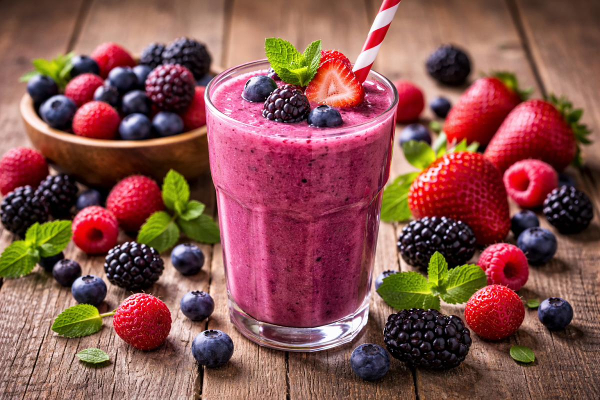 Sinh tố quả mọng như dâu tây, việt quất, mâm xôi cung cấp nhiều vitamin và khoáng chất bổ dưỡng. Chất chống oxy hóa có trong hầu hết quả mọng có thể phòng ngừa khô mắt, thoái hóa điểm vàng và các vấn đề thị lực khác.
