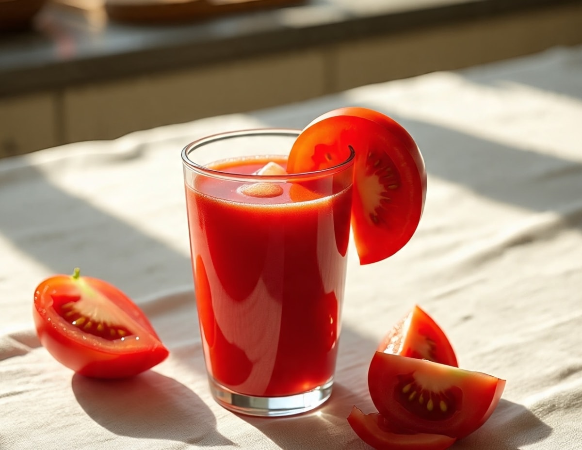 Nước ép cà chua chứa lycopene, một loại carotenoid có khả năng ngăn ngừa các bệnh liên quan đến thị lực. Beta carotene cùng với vitamin A và C trong nước ép cà chua cũng giúp bảo vệ tế bào võng mạc, lọc ánh sáng xanh từ màn hình, hỗ trợ phòng ngừa các vấn đề liên quan đến tuổi tác.