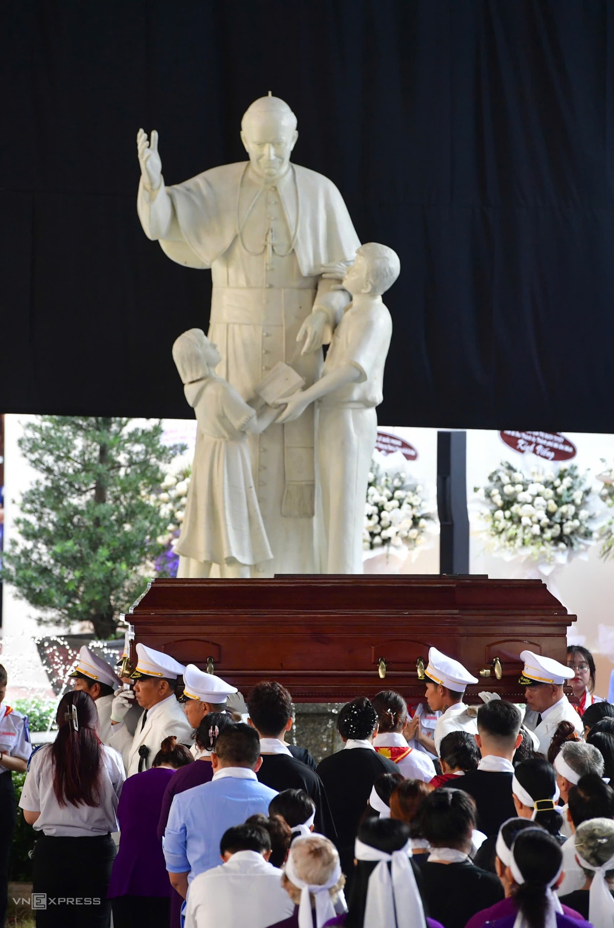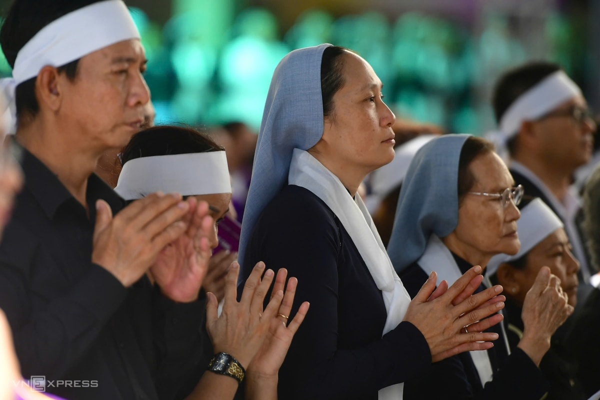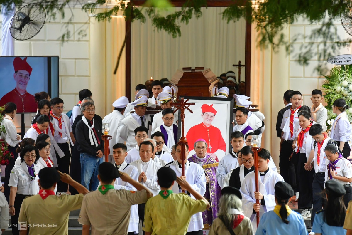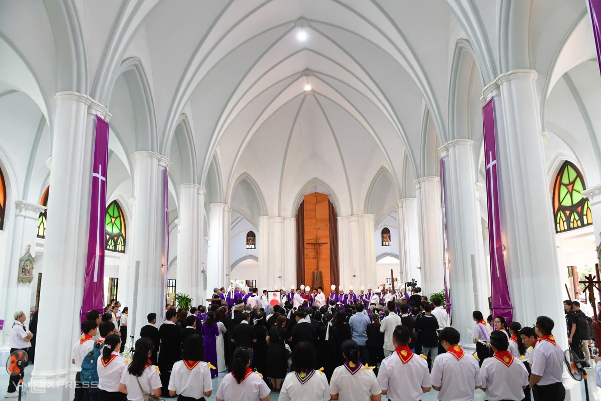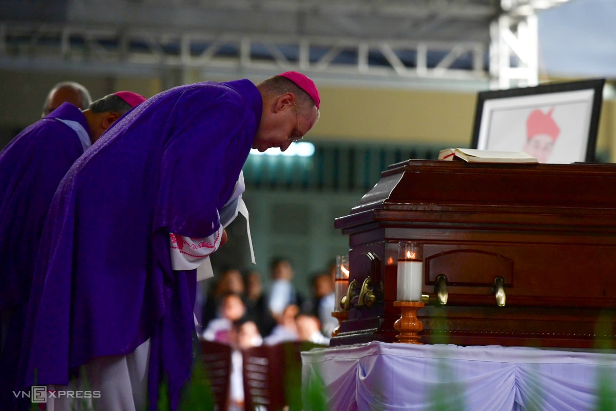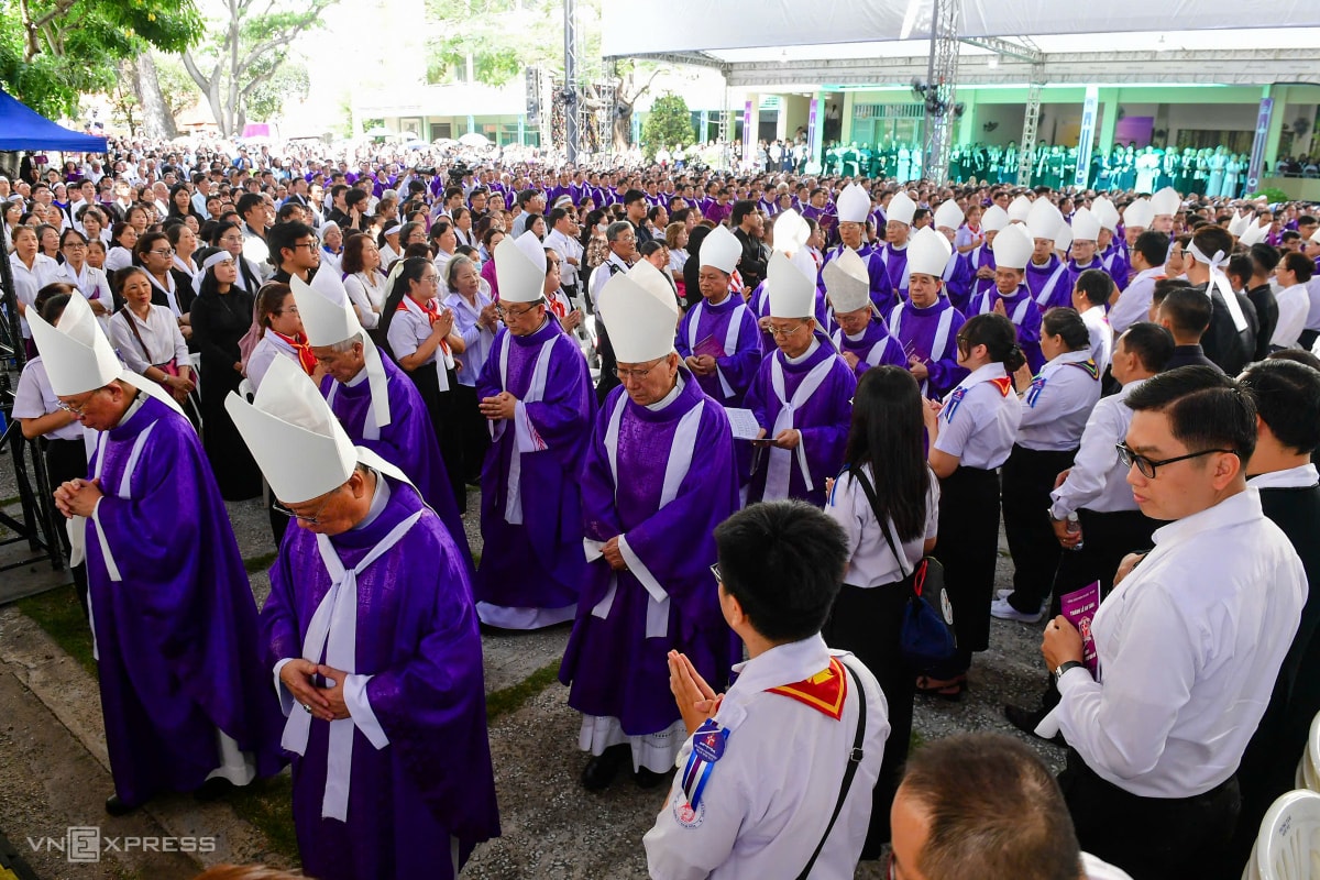 Theo Ban tổ chức tang lễ, có hơn 500 linh mục, giám mục cử hành thánh lễ. Trong bộ phẩm phục màu tím, các cha đồng tế cầu nguyện cho cố Đức Hồng y. Theo nghi lễ Công giáo, màu tím và màu đen là hai màu chủ đạo khi cử hành tang lễ.