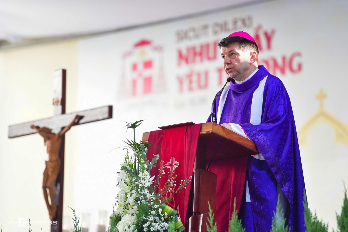 Đức Tổng giám mục Marek Zalewski, đại diện Tòa thánh Vatican thường trú tại Việt Nam, chia sẻ tại buổi lễ. "Hôm nay chúng ta quy tụ nơi đây trong niềm tiếc thương với tâm hồn chan chứa niềm hy vọng khi tưởng nhớ vào cõi dâng linh hồn Đức Hồng y Gioan Baotixita Phạm Minh Mẫn", Đức Hồng y Marek Zalewski nói.