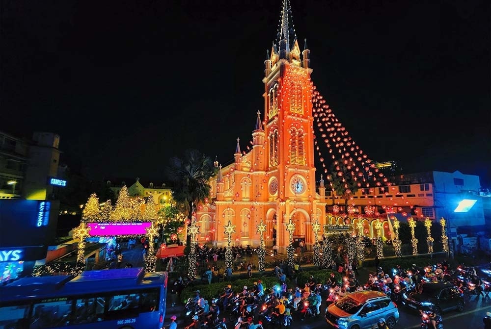 Mặt trước nhà thờ Tân Định dịp Giáng sinh. Ảnh: Phạm Thế Hiển