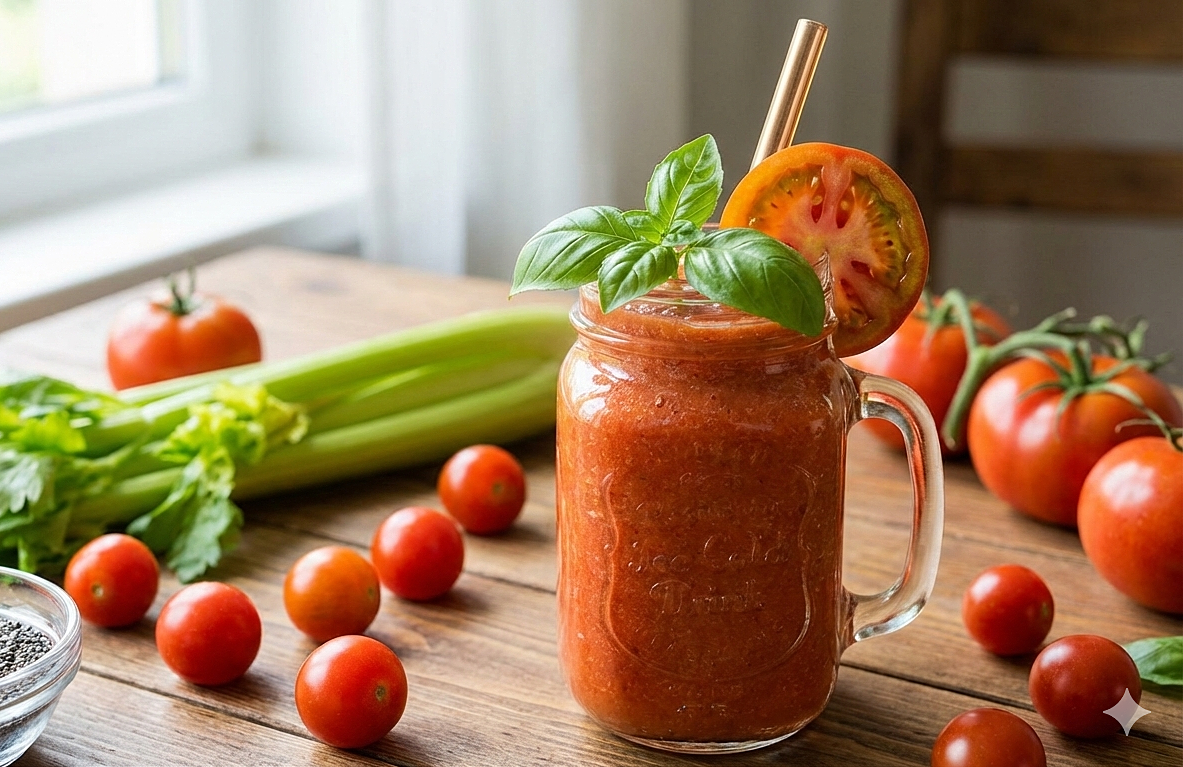 Sinh tố cà chua ít calo, chứa lượng đường tự nhiên thấp và có chỉ số đường huyết thấp. Nhờ bổ sung nước và chất xơ, uống loại sinh tố này có tác dụng kiểm soát cơn đói và hạn chế ăn quá nhiều. Các chất chống oxy hóa trong cà chua cũng cải thiện quá trình chuyển hóa chất béo.