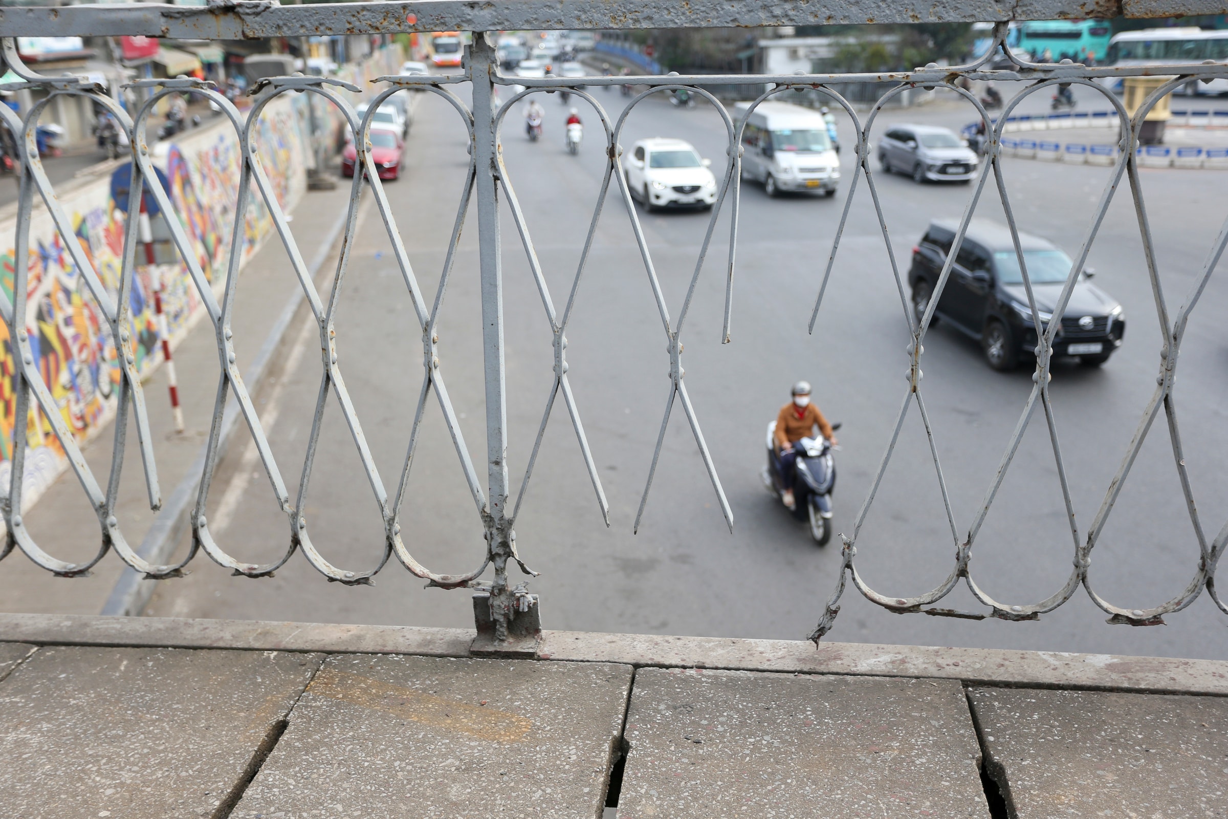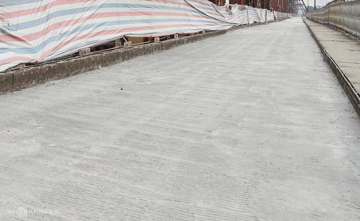 Một phần mặt đường bị hư hỏng, gồ ghề cầu Trần Nhật Duật và cầu Long Biên, đoạn giáp ga Long Biên được đổ bêtông và làm mới thành cầu.