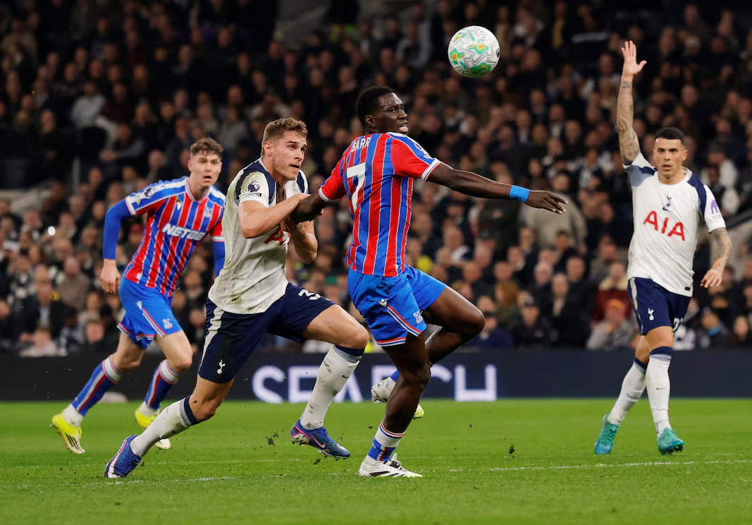 Tottenham chìm sâu vào khủng hoảng. Tottenham dẫn Crystal Palace 1-0 nhưng sụp đổ sau khi trung vệ Micky van de Ven bị truất quyền thi đấu. Thảm bại 1-3 khiến Tottenham toàn thua ba trận dưới thời tân HLV Igor Tudor. Đội bóng thành London - lần gần nhất rớt hạng khỏi giải đấu cao nhất nước Anh là năm 1977 - chỉ còn hơn nhóm xuống hạng một điểm và sẽ phải làm khách của Liverpool tại Anfield ở vòng tới.
