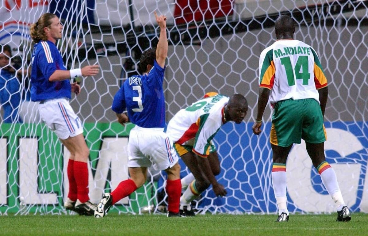 Pháp - Senegal, lượt đầu bảng I, ngày 16/6. Trận thua Senegal 0-1 trong ngày khai mạc World Cup 2002 là một kỷ niệm đau thương đối với Pháp. Sau đó, nhà đương kim vô địch hòa Uruguay 0-0, thua Đan Mạch 0-2, rồi bị loại ngay từ vòng bảng.