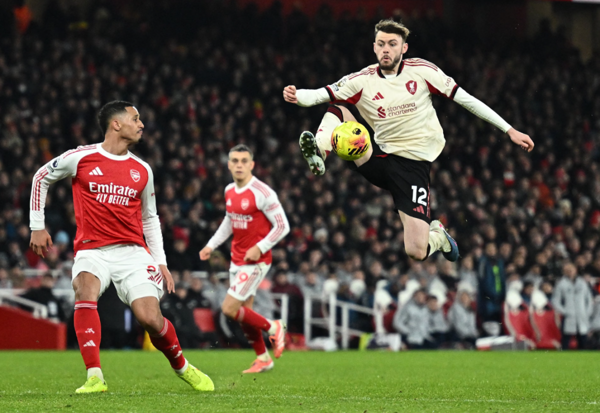 Sau khoảng 30 phút hoàn toàn áp đảo, Arsenal chỉ cần một đến hai phút để đánh mất quyền kiểm soát. Khi Liverpool kiểm soát bóng tốt hơn, bầu không khí trên sân lập tức thay đổi. Nỗi sợ len lỏi, kéo theo sai sót của William Saliba và thủ môn David Raya, tạo điều kiện để Conor Bradley lốp bóng trúng xà.