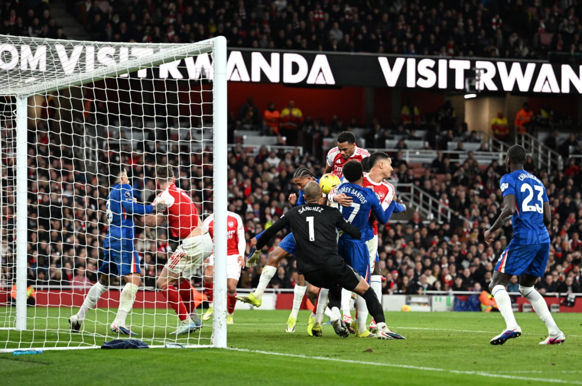 Arsenal lại hái quả ngọt từ những tình huống cố định. Bầu không khí chờ đợi hiện rõ trên các khán đài sân Emirates mỗi khi Arsenal được hưởng phạt góc. Và chủ nhà vượt lên từ tình huống phối hợp bài bản. Bukayo Saka treo bóng về cột xa để Gabriel Magalhaes đánh đầu cắt ngang khung thành, rồi William Saliba kết thúc cận thành tung lưới đội khách. Đó đã là bàn thứ 15 của Arsenal từ phạt góc mùa này, trước khi bàn thứ 16 xuất hiện khi Jurrien Timber ấn định chiến thắng từ quả tạt của Declan Rice.