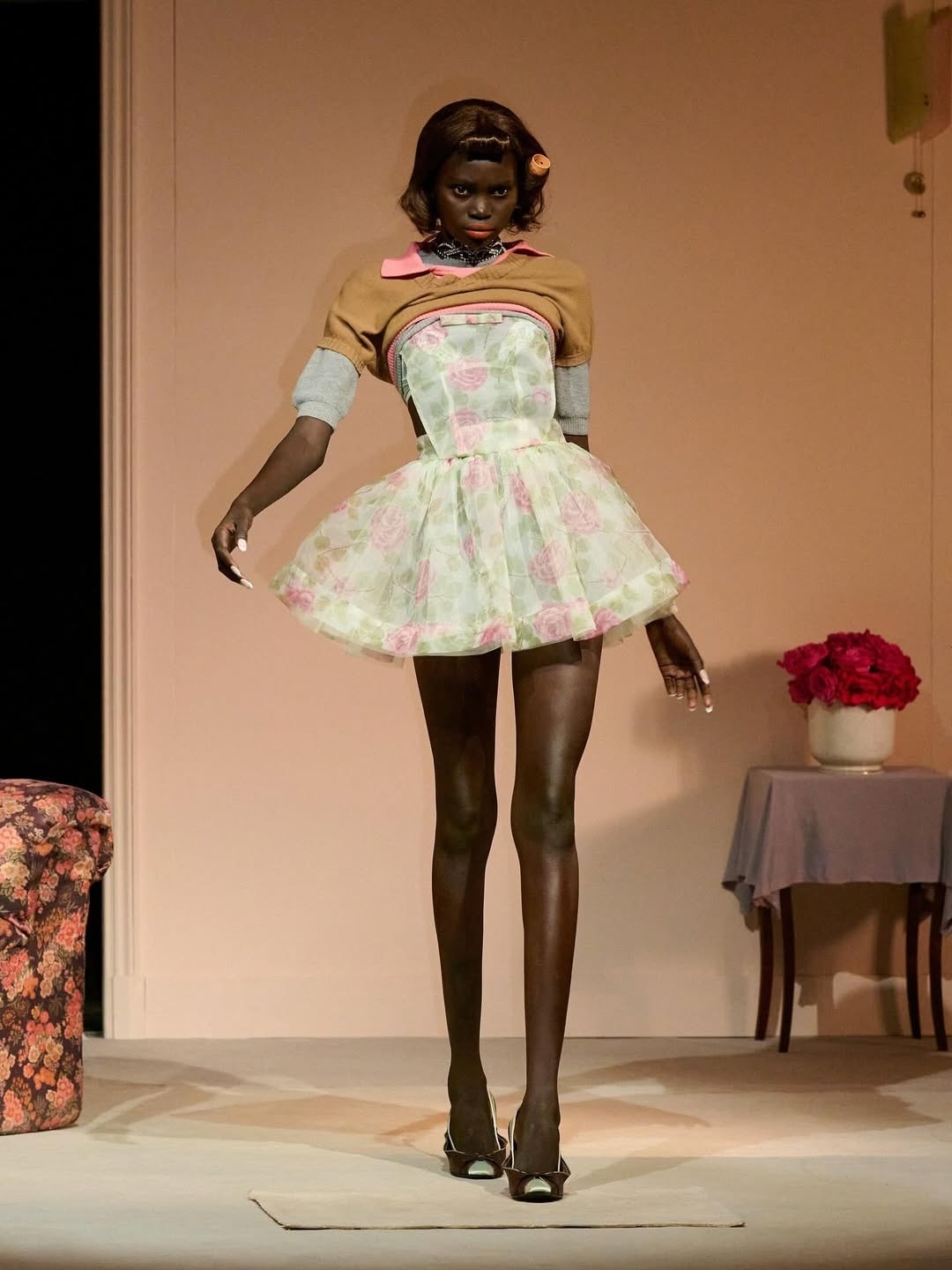 August Barron xây dựng bộ sưu tập Xuân Hè 2026 quanh ý tưởng "Real Housewife", nhưng không tái hiện hình ảnh người nội trợ kiểu cũ mà là kiểu siêu thực với góc nhìn mỉa mai. Các thiết kế có phom dáng trông như đồ được mặc rồi tháo ra. Thay vì sân khấu truyền thống, show tổ chức tại một club ở Paris, không gian được bài trí như phòng khách thập niên 1950 với bàn là, sofa, đồ đạc gia đình. Tất cả giúp khán giả cảm nhận show như hoạt cảnh đời sống hơn là buổi xem quần áo.
