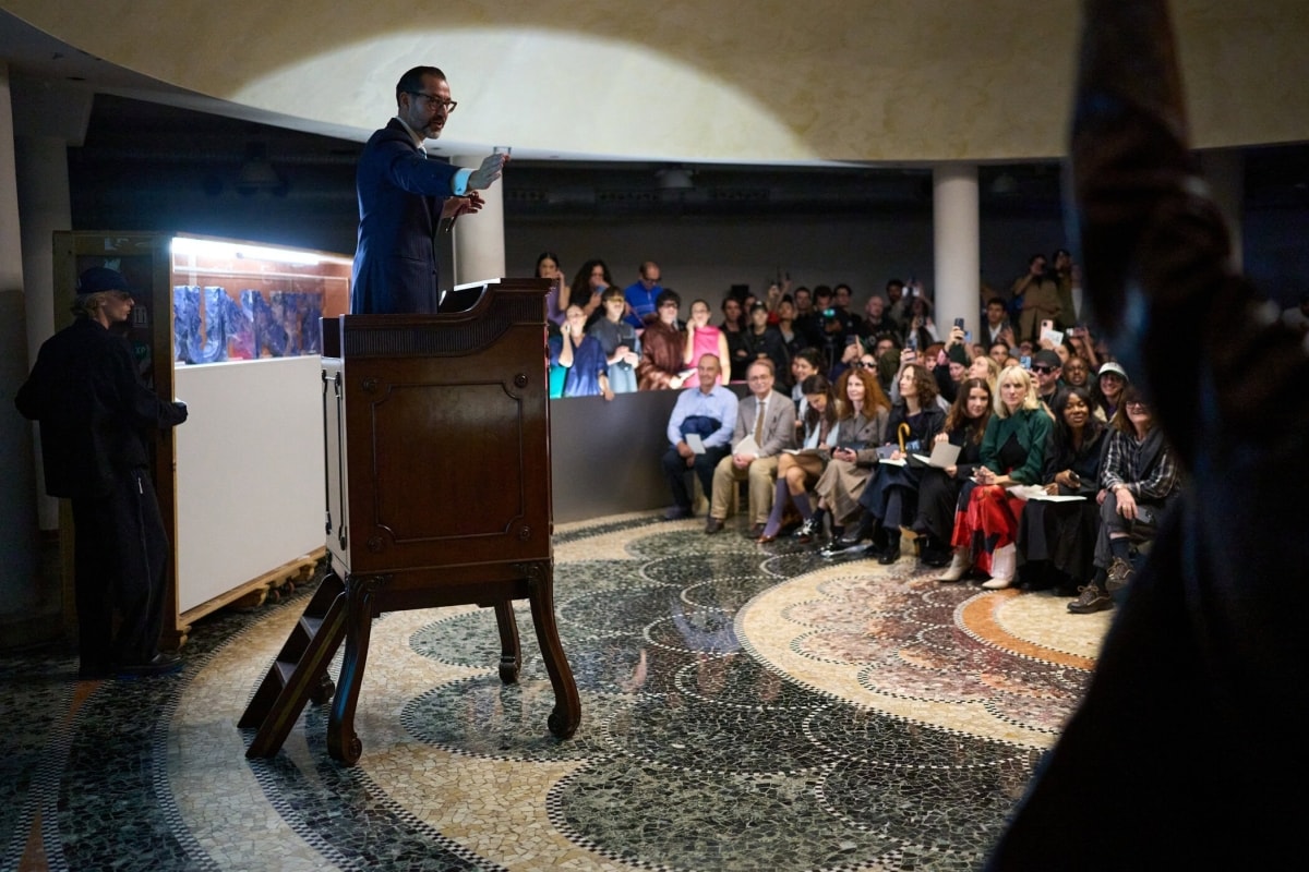 Hãng bắt tay nhà đấu giá Christie’s, biến toàn bộ show thành một buổi đấu giá giả tưởng. Ở đây, mọi thứ từ quần áo, logo thương hiệu đến chính hai nhà sáng lập đều được đem ra "bán". Một số khán giả tham gia tương tác như thể họ đang mua thật trong không khí hài hước.