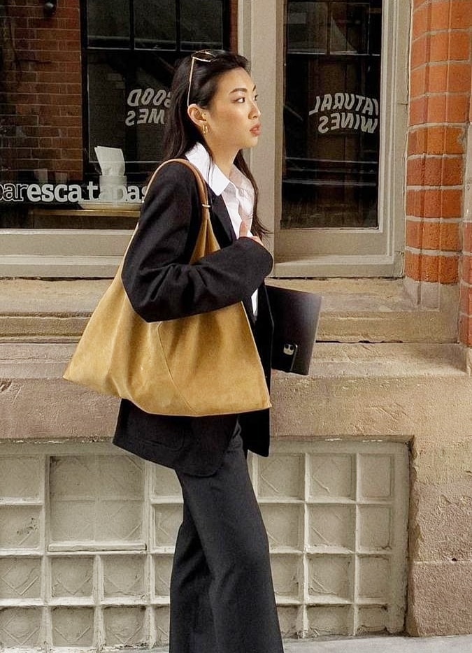Về phụ kiện, túi da lộn được xem là không có đối thủ. Thiết kế có nhiều kiểu dáng như tote, hobo, phù hợp với nhu cầu của từng người.