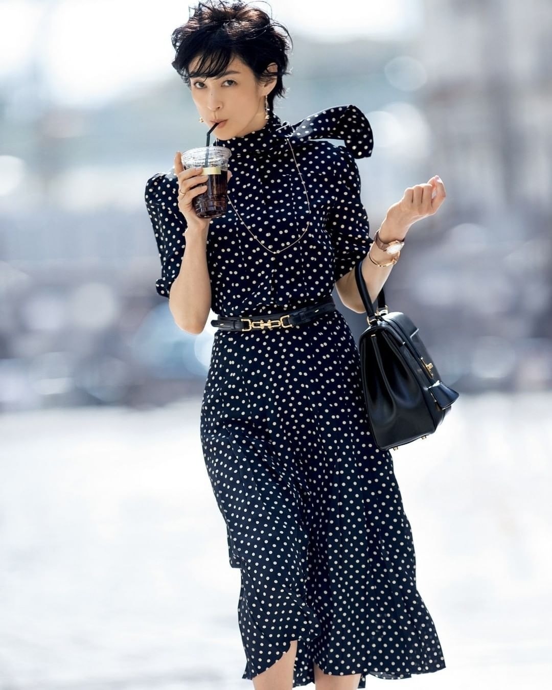 Váy áo chấm bi của những năm 1950 trở lại. Nếu muốn tạo cảm giác thon thả khi mặc hoạt tiết này, bạn nên chọn kích cỡ các chấm tròn càng nhỏ càng tốt.
