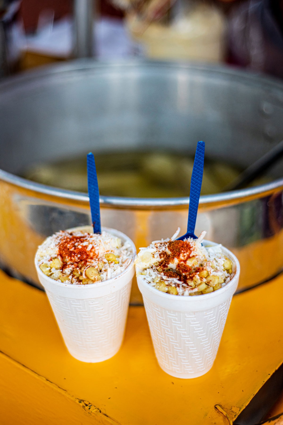 Esquites là phiên bản khác của elote, được tách hạt và cho vào ly, ăn bằng thìa. Cả hai dạng đều phổ biến tại các hội chợ và khu chợ mùa thu. Các gia đình thường vừa dạo phố vừa cầm cốc esquites ấm tay hoặc xiên bắp elote nóng hổi. Với du khách, thưởng thức món bắp nướng trong tiết trời thu là cách để cảm nhận văn hóa ẩm thực đường phố đặc trưng của Mexico.