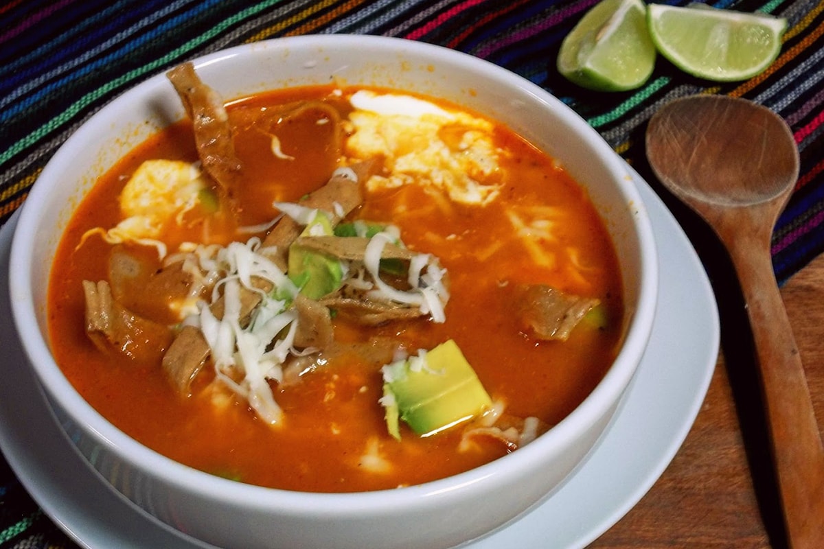 Sopa Azteca, còn gọi là súp tortilla, là món ăn kết hợp giữa nước dùng nhẹ với những miếng bánh tortilla chiên giòn, bơ, phô mai và ớt. Món ăn này thường được bán nóng hổi bởi các quầy hàng rong, ăn kèm chanh và kem chua để cân bằng giữa vị cay béo, tạo nên hương vị hài hòa. Đây là món được nhiều người dân và du khách khi đến Tây Ban Nha chọn thưởng thức khi thời tiết bắt đầu chuyển lạnh.