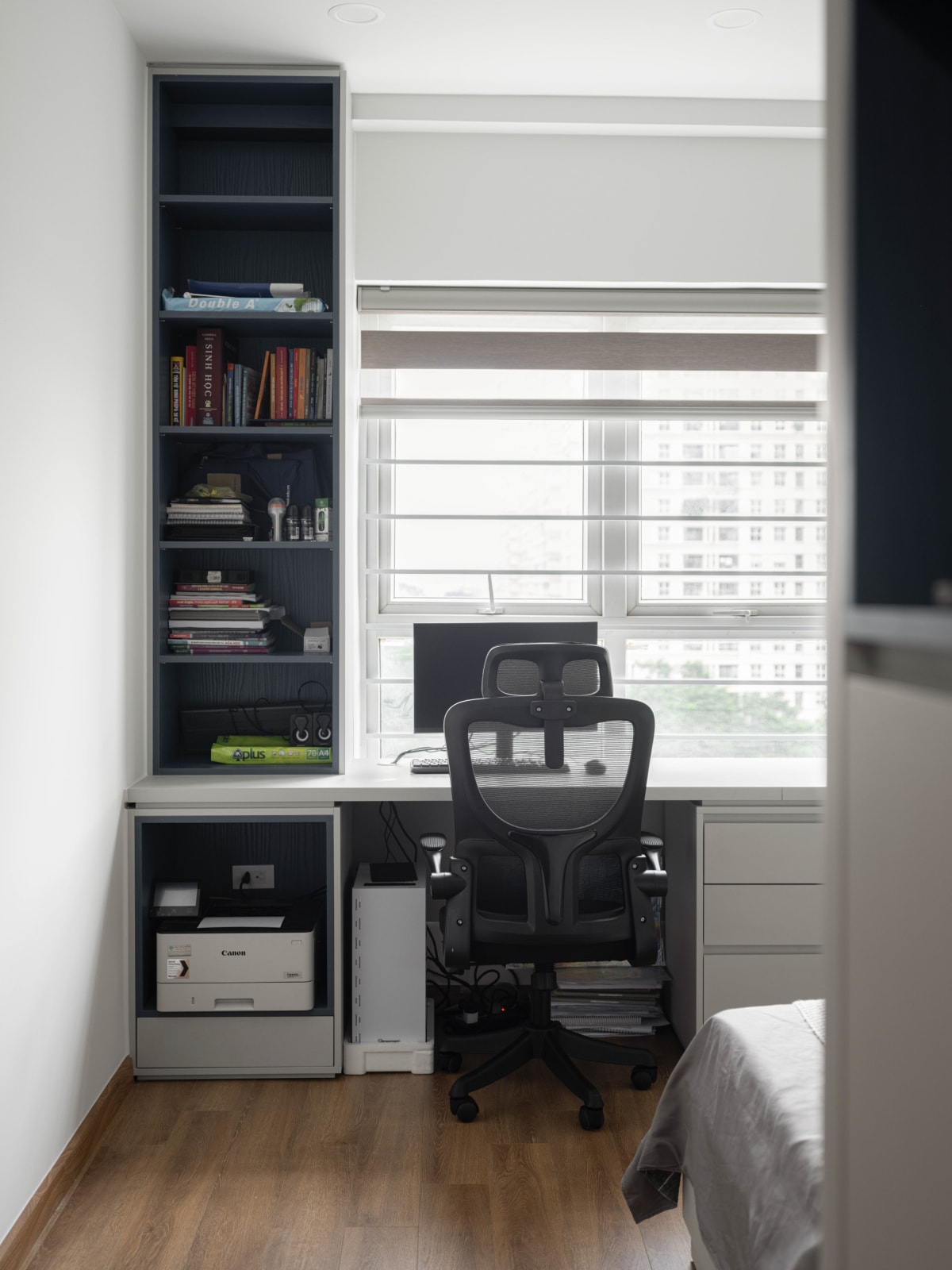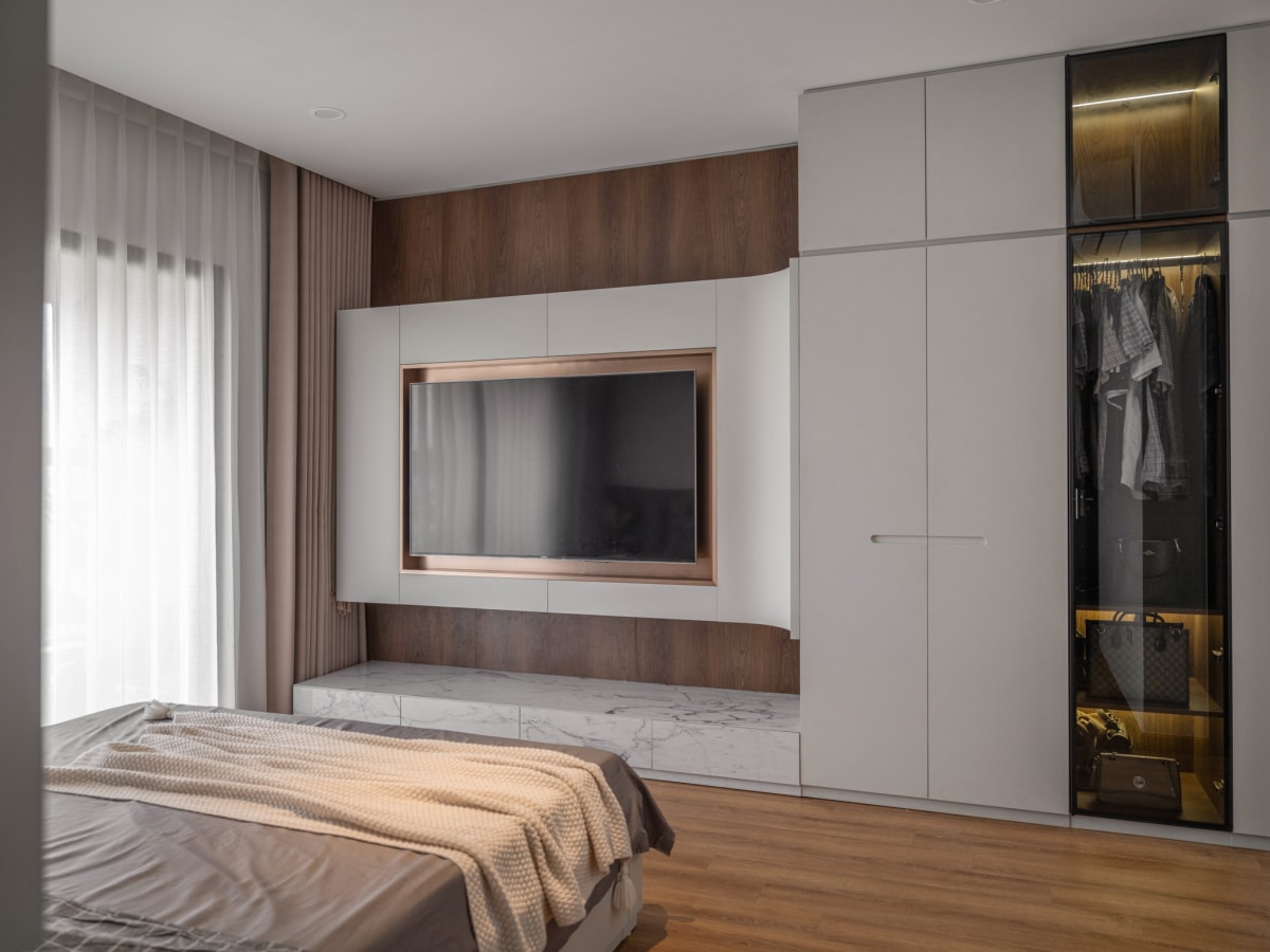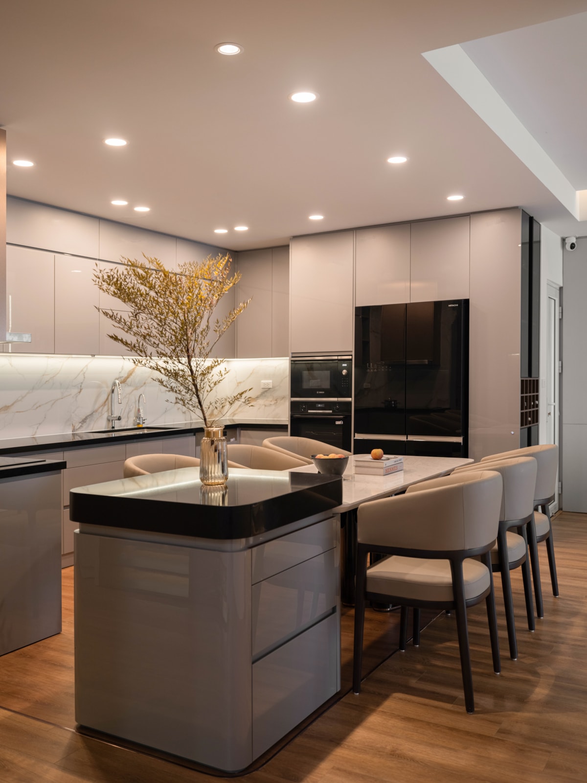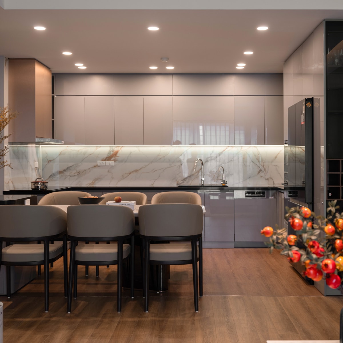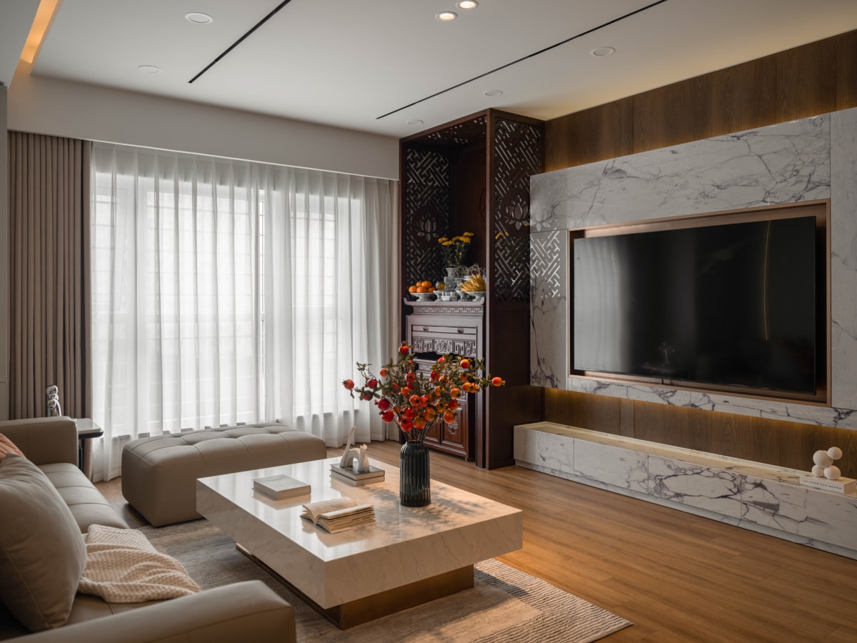 Căn hộ được sửa lại theo hướng tiết chế hình thức, tập trung công năng và trải nghiệm sử dụng, phù hợp giai đoạn sống chậm của gia chủ ngoài 40 tuổi.