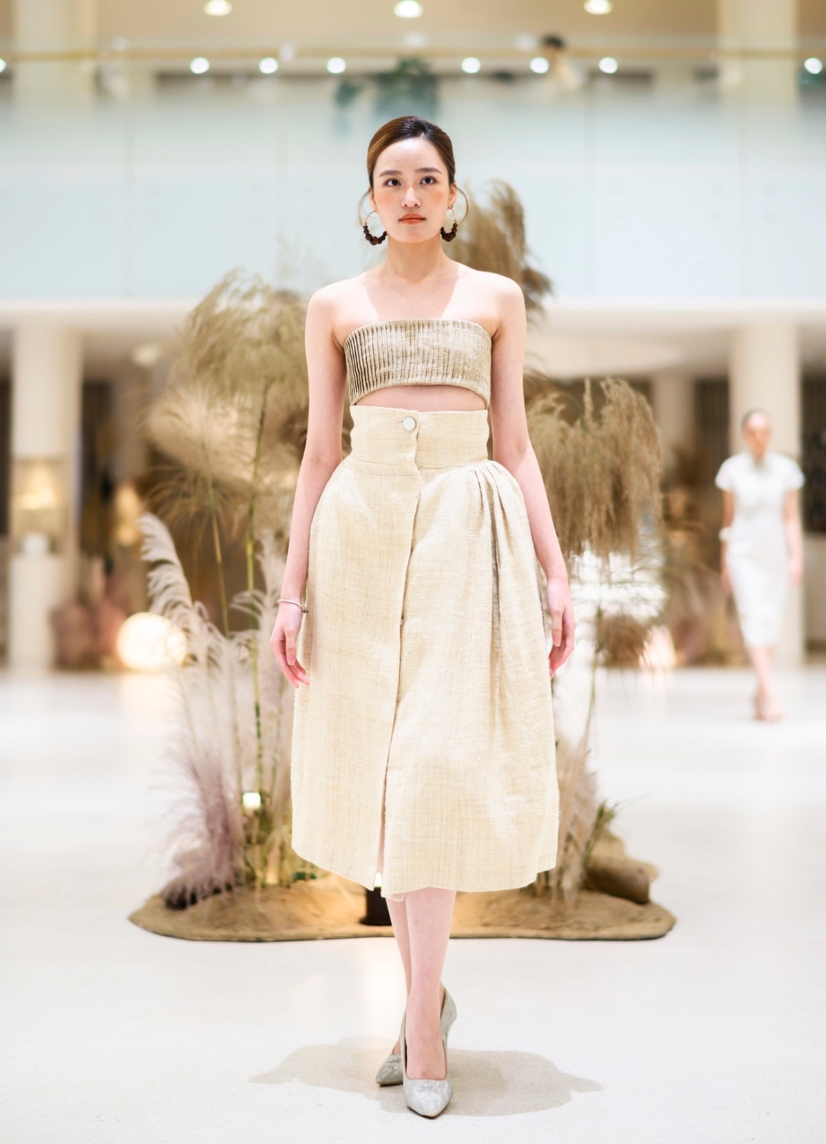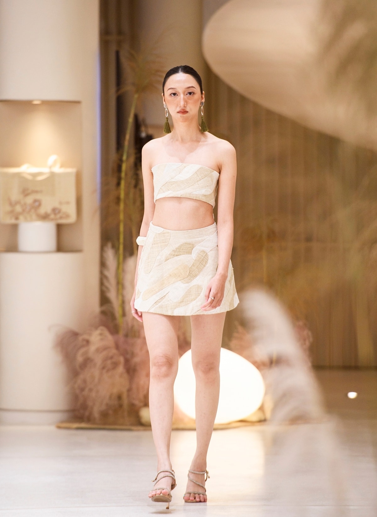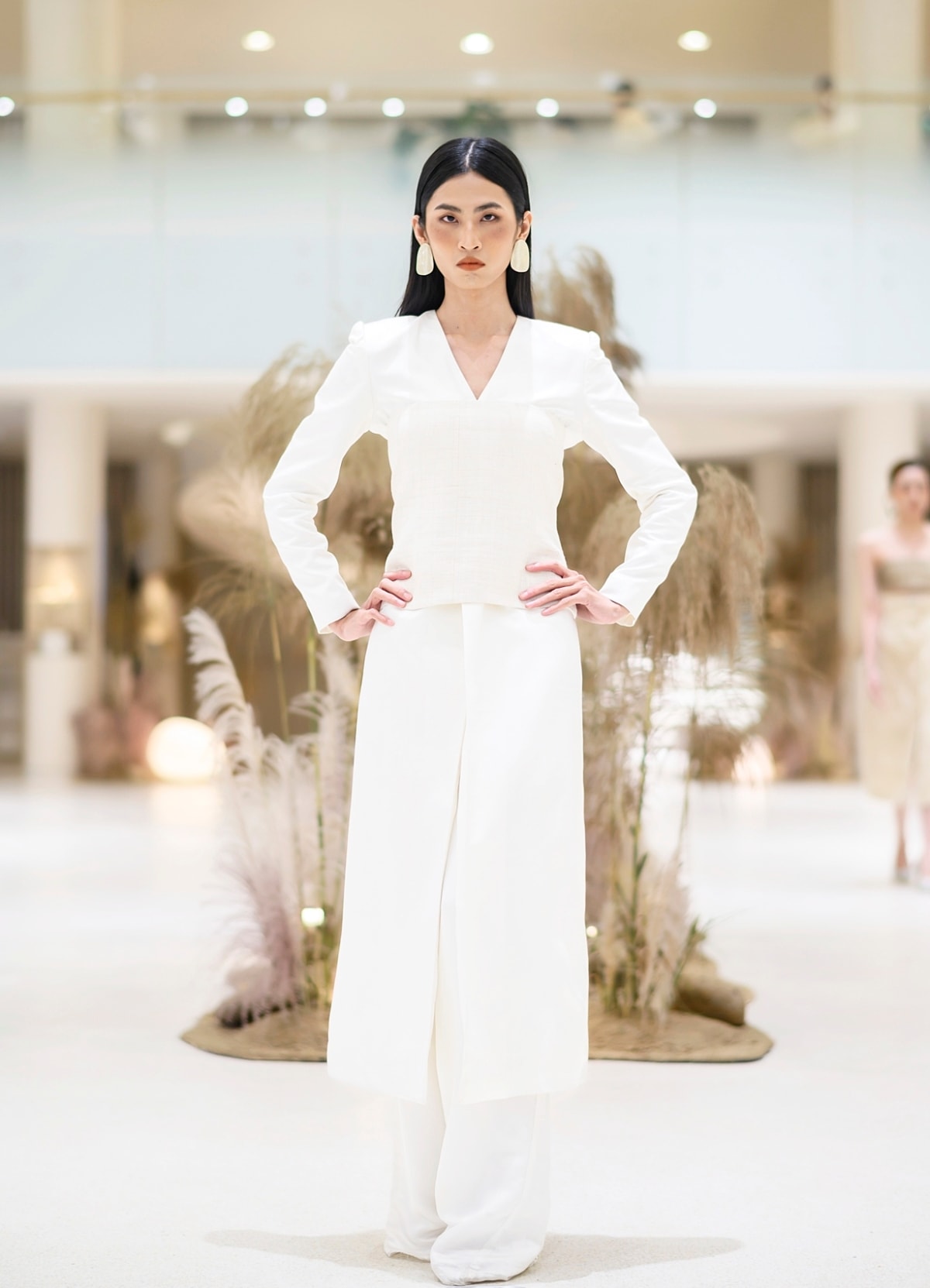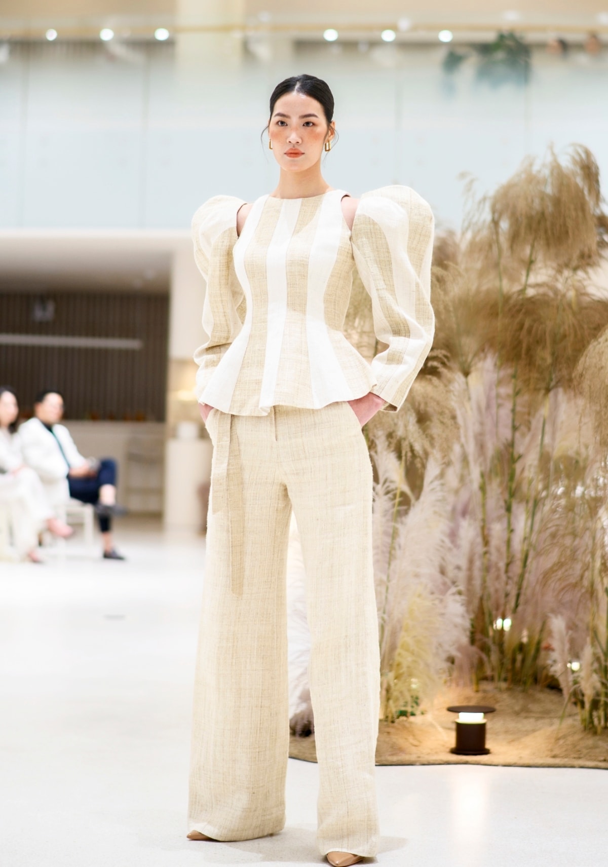 Show của Phạm Bá Lâm và Trần Phương Thảo đem tới 30 mẫu thiết kế được tạo nên từ vải gai dầu dệt tay của đồng bào Mông, kết hợp lụa Mã Châu. Trang phục mang tính ứng dụng cao với phom dáng đơn giản, dễ mặc như áo peplum, crop top, quần ống suông, áo quấn, chân váy mini và midi.
