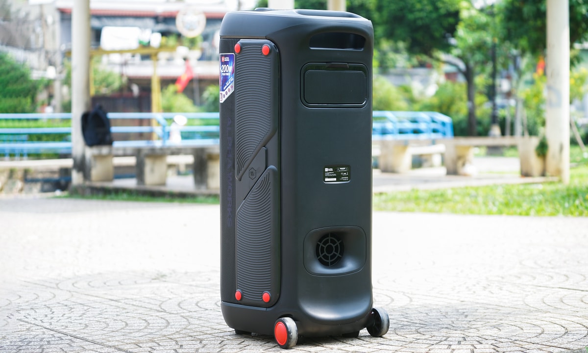 Sản phẩm có thiết kế dạng tháp đứng. Do trọng lượng khá lớn, loa có hai bánh xe phía dưới để hỗ trợ di chuyển trên mặt phẳng. Thực tế, tính di động của loa cũng hạn chế, chủ yếu phù hợp bối cảnh tiệc, giải trí tại gia.