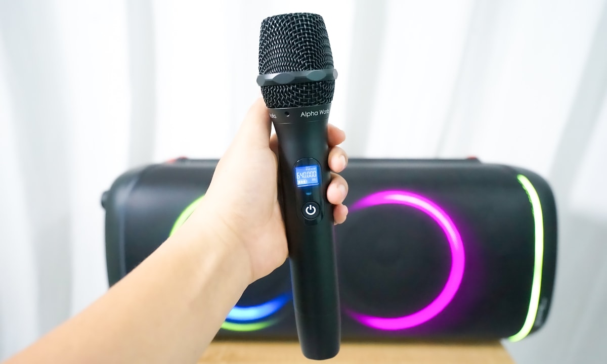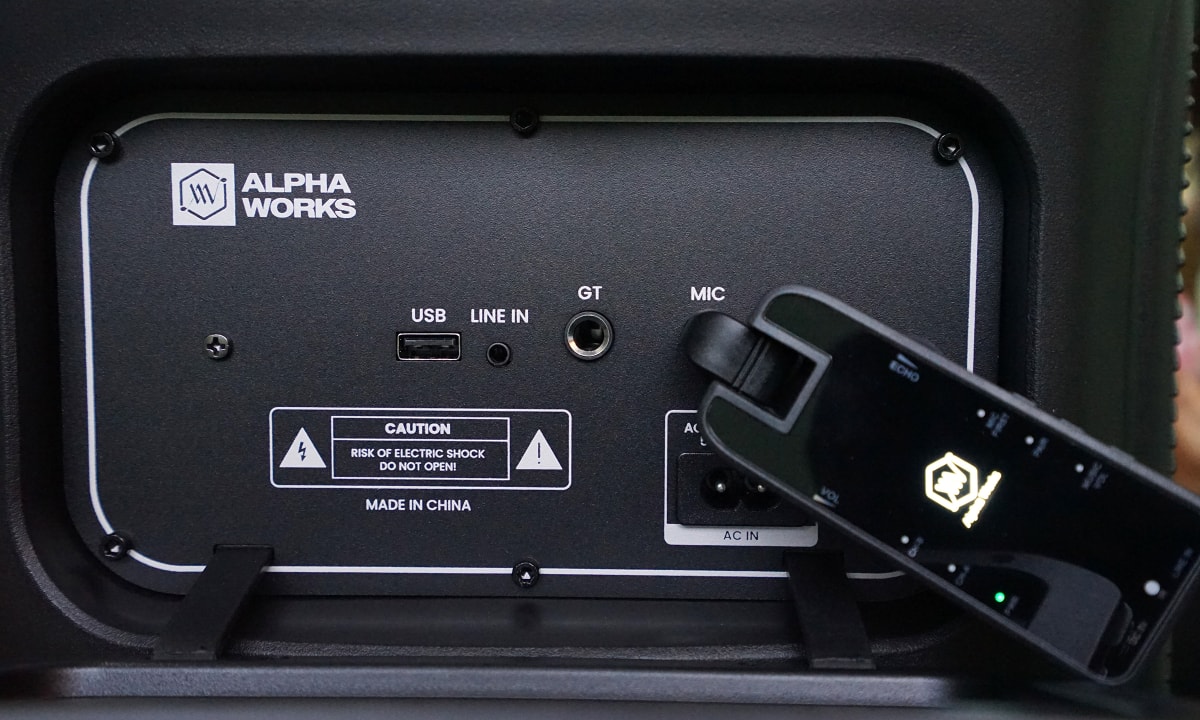 Các chức năng karaoke trên loa được hỗ trợ khá sâu, trong đó có bộ xử lý Echo và hiệu ứng Reverb riêng giúp âm thanh gốc có độ ngân và rộng hơn, kèm chức năng Mic Priority (ưu tiên micro) giúp tự động giảm tiếng nhạc khi người dùng nói vào micro. Tuy vậy, Alpha Works không trang bị micro bên trong hộp sản phẩm (chỉ tặng micro có hạn trong chương trình khuyến mãi), buộc người dùng phải chi thêm tiền mua nếu muốn sử dụng tính năng này.