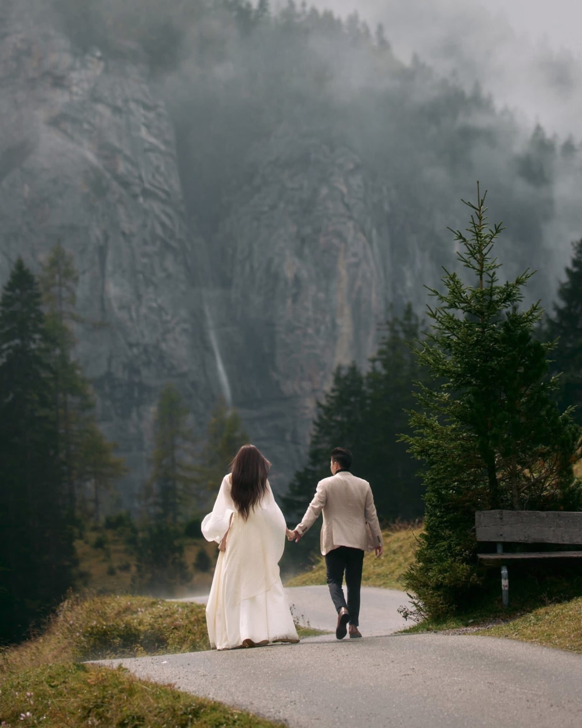 Họ dạo bước giữa khung cảnh thiên nhiên núi non, hồ nước lãng mạn ở Thụy Sĩ.
