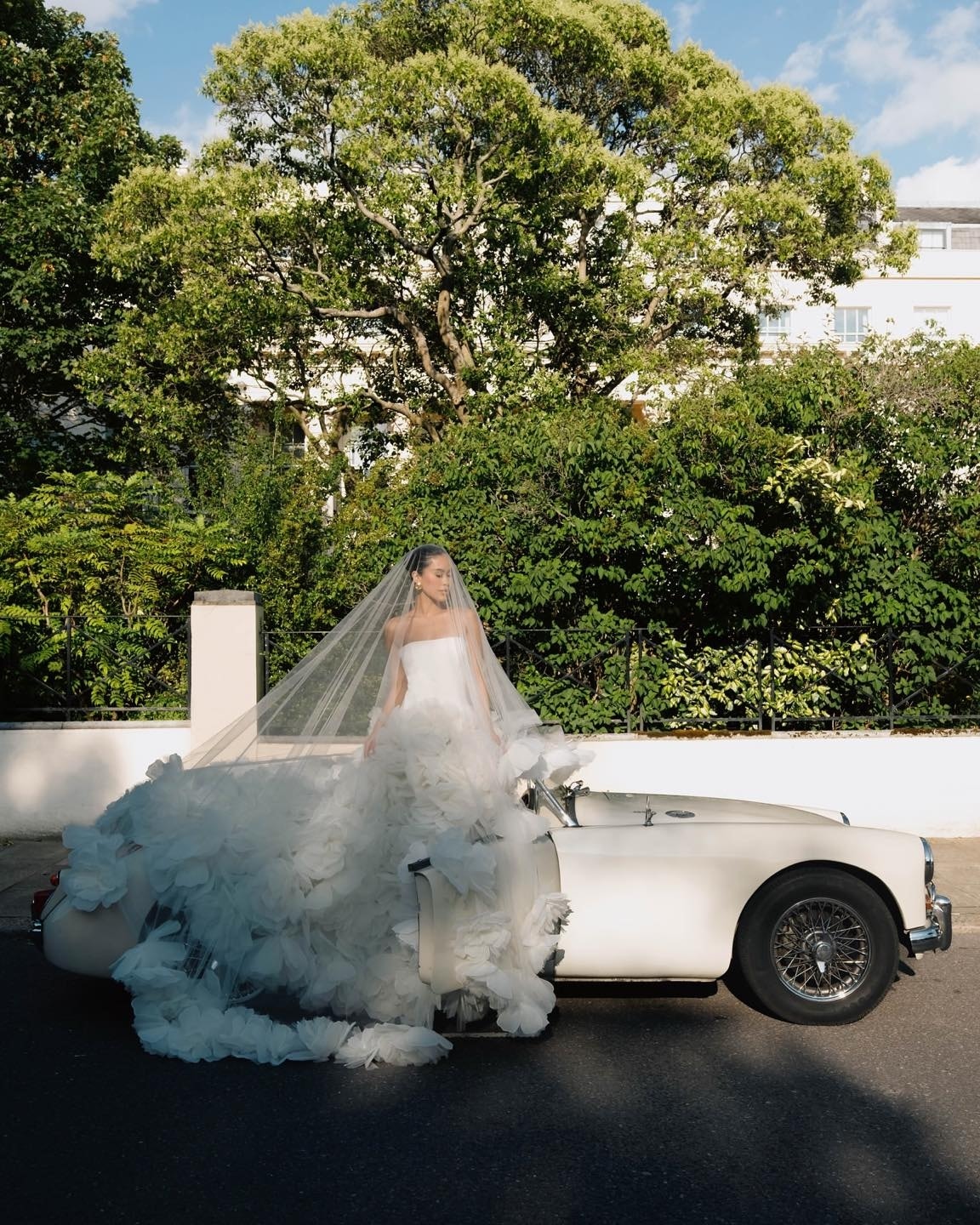 Tiên Nguyễn tạo dáng với đầm cưới của nhà mốt quốc tế