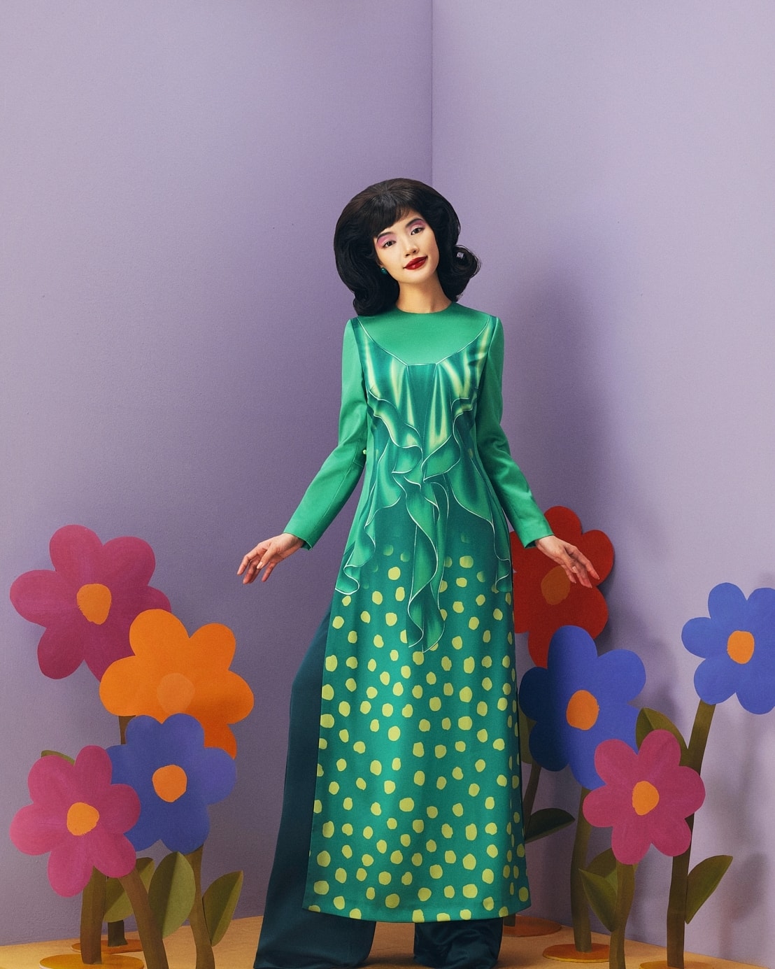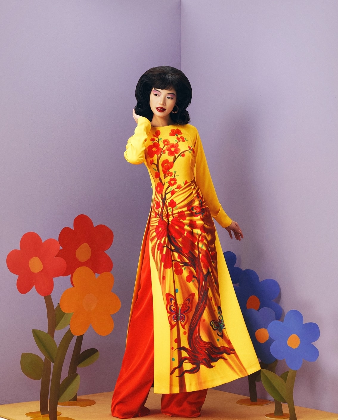 Áo dài Tết 'đánh lừa thị giác' của Thủy Nguyễn