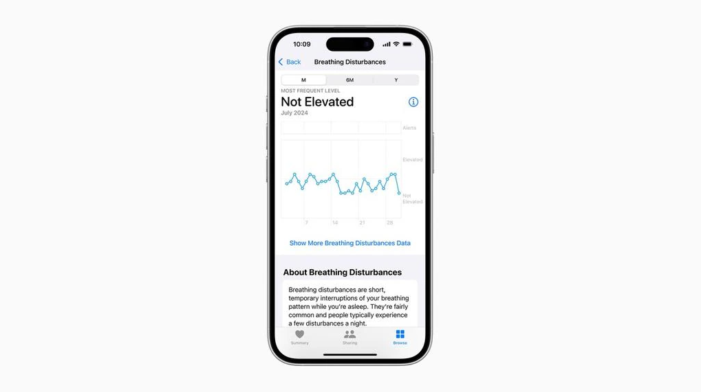 Tính năng mới này sử dụng cảm biến chuyển động (accelerometer) tích hợp trong Apple Watch để theo dõi một chỉ số mới có tên “Rối loạn hô hấp khi ngủ” (Breathing Disturbances).