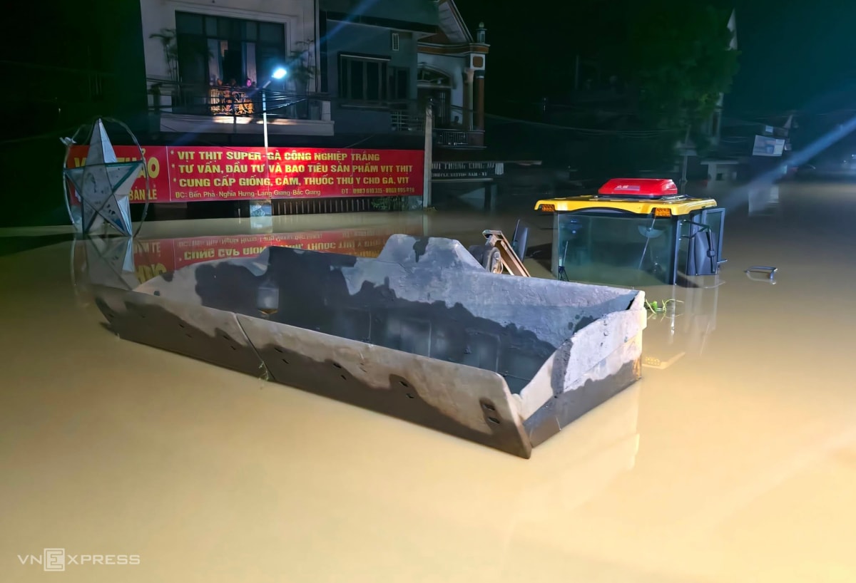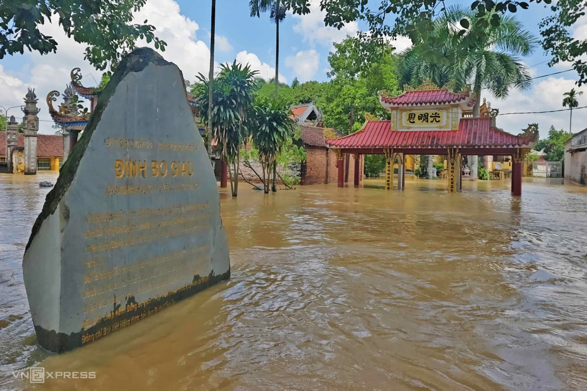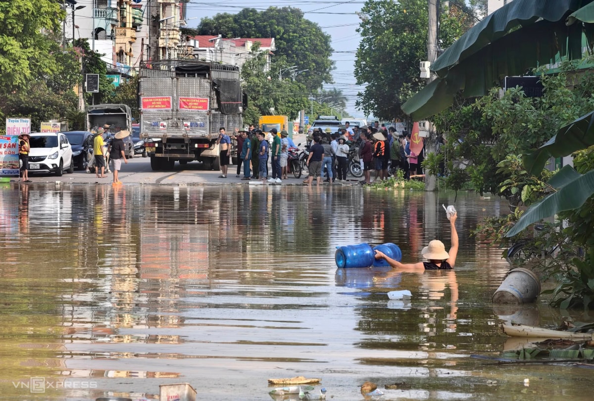 Xóm làng bị cô lập vì nước lũ tràn đê, người dân bên bờ sông Thương phải kết bè mảng đi nhận đồ cứu trợ, mất trắng hoa màu, lúa mùa gần chín chưa kịp gặt.