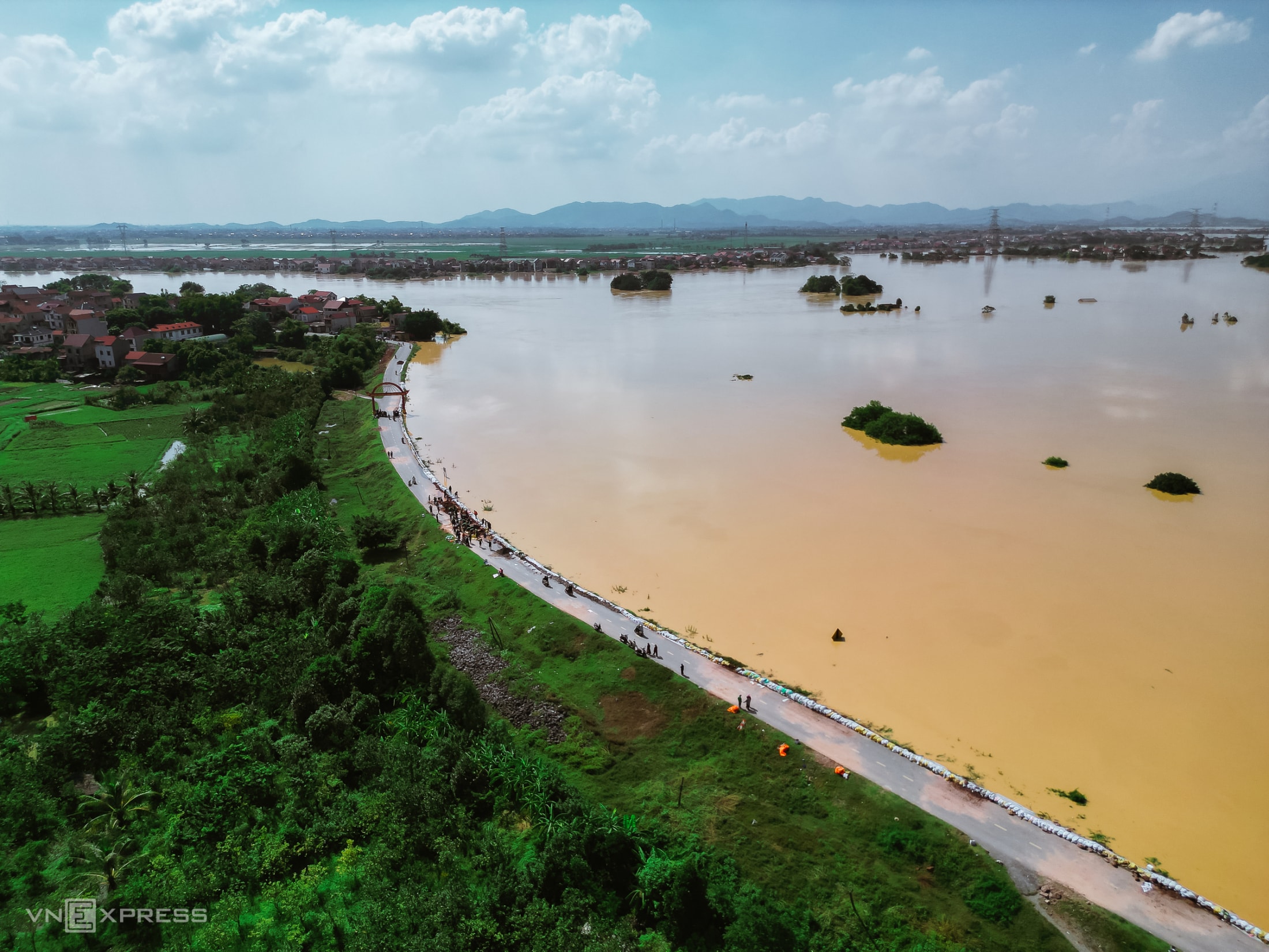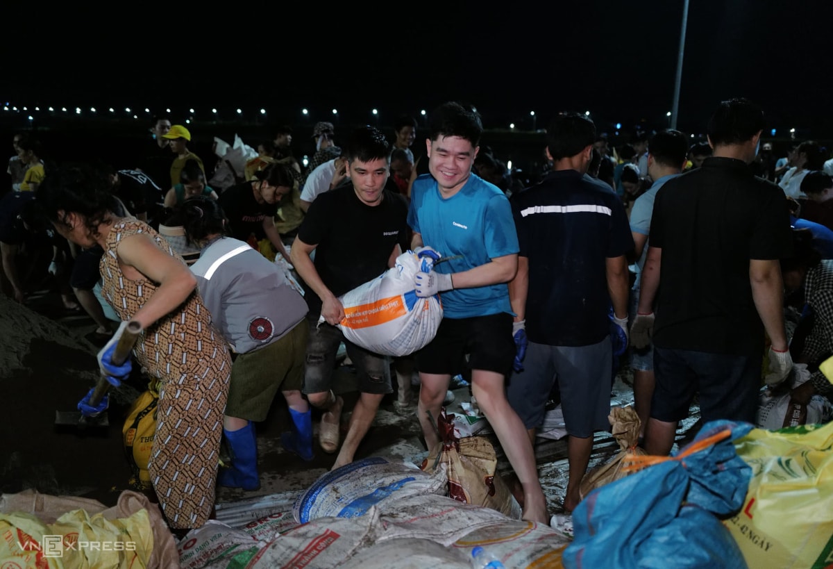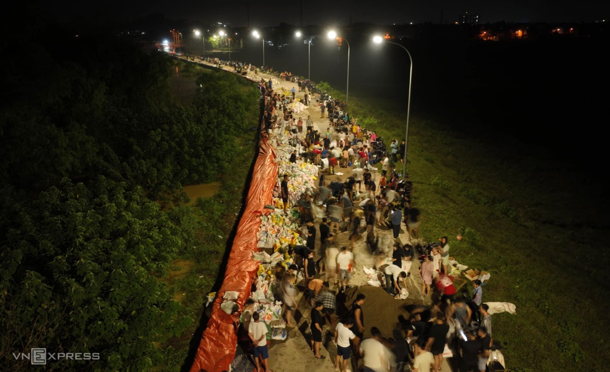 Người dân Bắc Ninh thức trắng đêm đắp đê. Video: Huy Mạnh