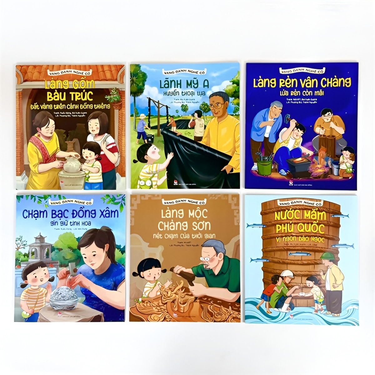 Cuối tháng 11/2024, Nhà xuất bản Kim Đồng ra mắt sáu tập. Tháng 4/2025, bốn tập còn lại được phát hành. Nhân vật chính của bộ sách là cô bé An, khoảng bảy tuổi, thông minh và ham học hỏi. Theo chân bố mẹ, An có những chuyến trải nghiệm ở các làng nghề truyền thống trên cả nước như làng mộc Chàng Sơn (Hà Nội), làng gốm Bàu Trúc (Ninh Thuận cũ).