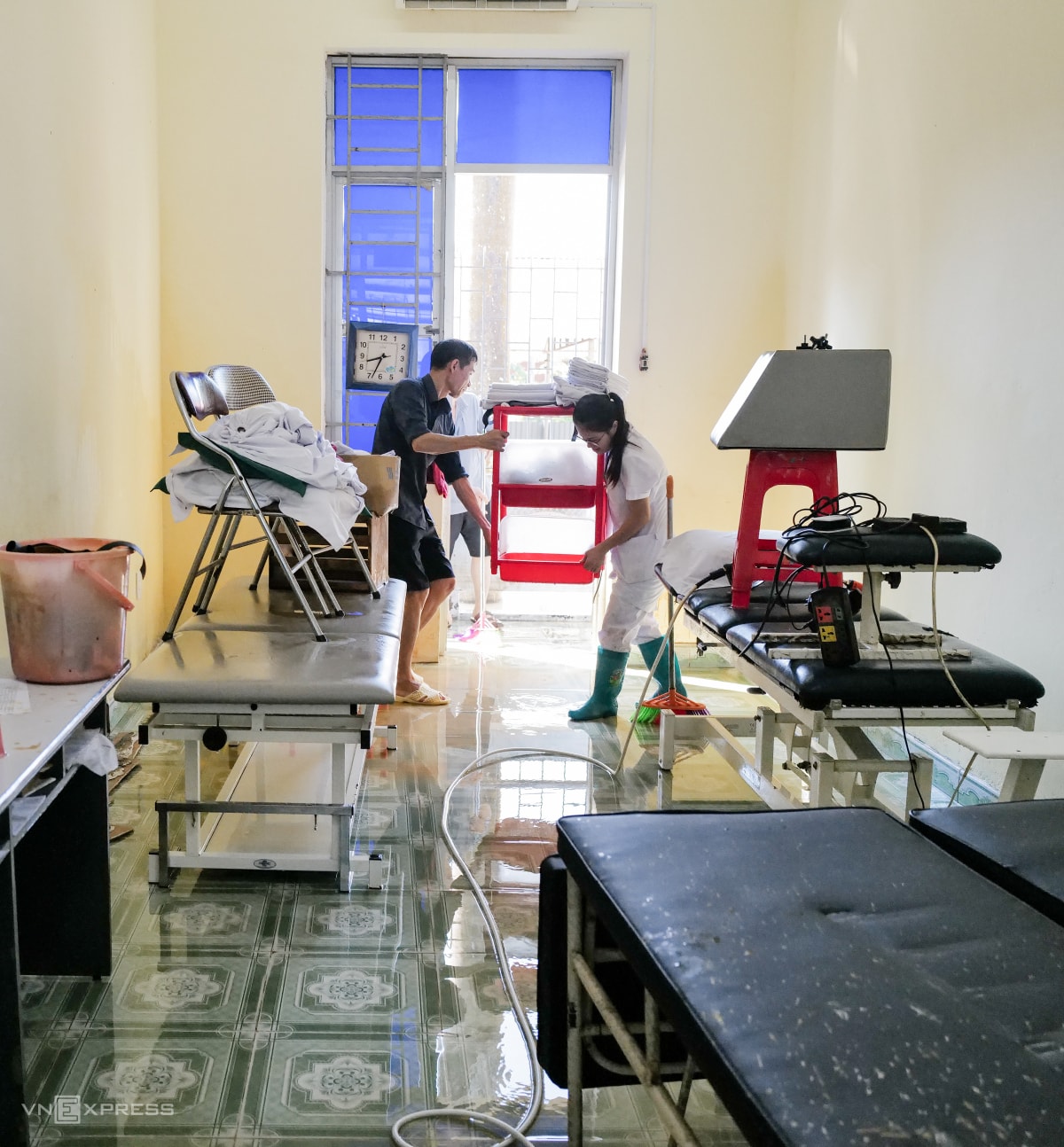 Trung tâm Y tế khu vực Hữu Lũng bị cô lập giữa biển nước, việc vận chuyển thuốc, đồ ăn cho khoảng 300 bệnh nhân và nhân viên y tế phải thực hiện bằng thuyền, hộp xốp.