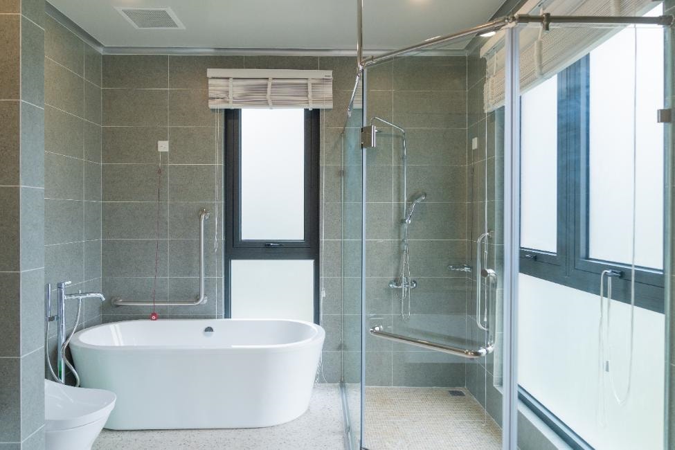 Phòng vệ sinh trang bị đầy đủ tiện nghi hiện đại, tối ưu công năng sử dụng và đảm bảo tiêu chuẩn an toàn, thuận tiện cho người bệnh và gia đình trong sinh hoạt hàng ngày. Ảnh: Vinmec